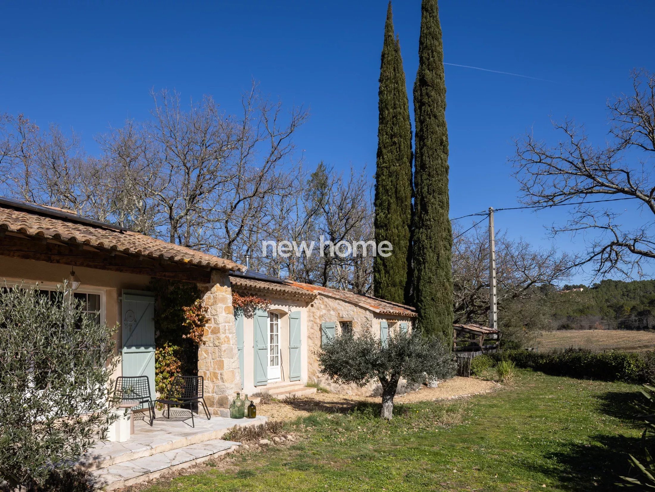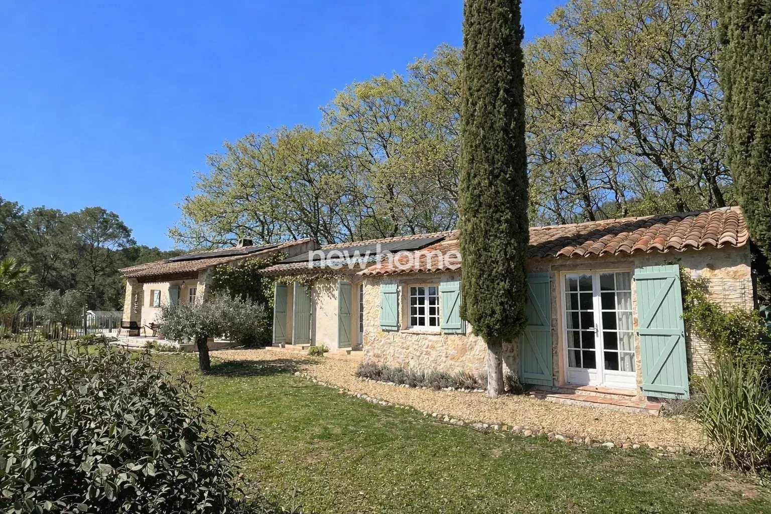 Cette belle villa de plain-pied, entièrement rénovée, d'environ 110 m², dispose d'une piscine (10 x 3,5 m) et se situe dans un environnement verdoyant entre Lorgues et Flayosc. Ces deux villages pleins de charme sont facilement accessibles à vélo par l'ancienne voie ferrée. La maison et le jardin ont été aménagés avec le plus grand soin, en utilisant des matériaux nobles. Cette propriété clé en main, de plain-pied, offre un vaste séjour/salle à manger avec un poêle à bois et parquet en chêne, une cuisine ouverte, ainsi que des portes-fenêtres donnant sur une terrasse partiellement couverte. L'espace nuit comprend deux chambres partageant une salle de bains, un WC indépendant, ainsi qu'une troisième chambre avec salle de bains et WC en suite. Pour le télétravail, une pièce bureau idéale est aménagée, équipée d'un poêle à granulés et de la fibre optique. Un cellier de 12 m² attenant à la maison et un abri de jardin complètent les espaces de rangement.