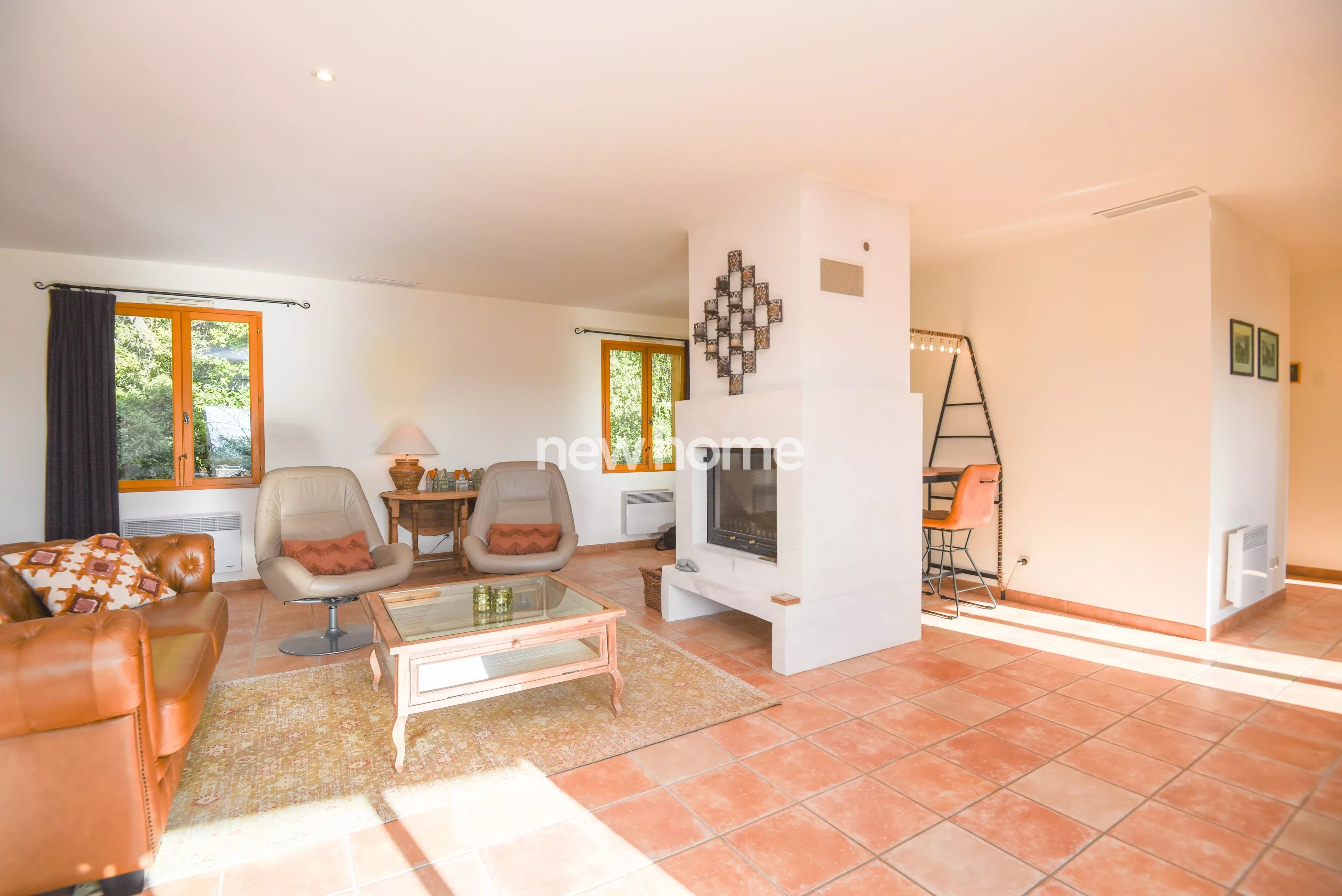Nichée dans un environnement verdoyant, à proximité immédiate des commerces de Lorgues, cette charmante maison d'environ 135 m² avec piscine et garage bénéficie d'un beau cadre avec une belle vue. L'accès à la maison se fait par un escalier extérieur menant à une belle terrasse en partie couverte, offrant une vue dégagée. L'étage principal accueille un vaste séjour / salle à manger de 45 m², baigné de lumière, avec cheminée insert, ainsi qu'une cuisine ouverte. L'ensemble forme un espace de vie chaleureux, harmonieux et lumineux. Deux belles chambres, une salle d'eau et des WC complètent ce niveau.