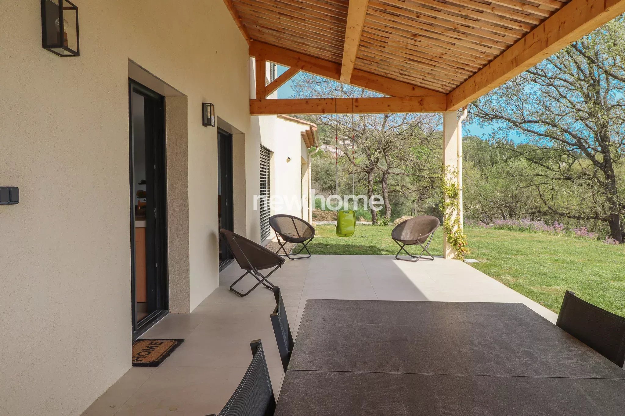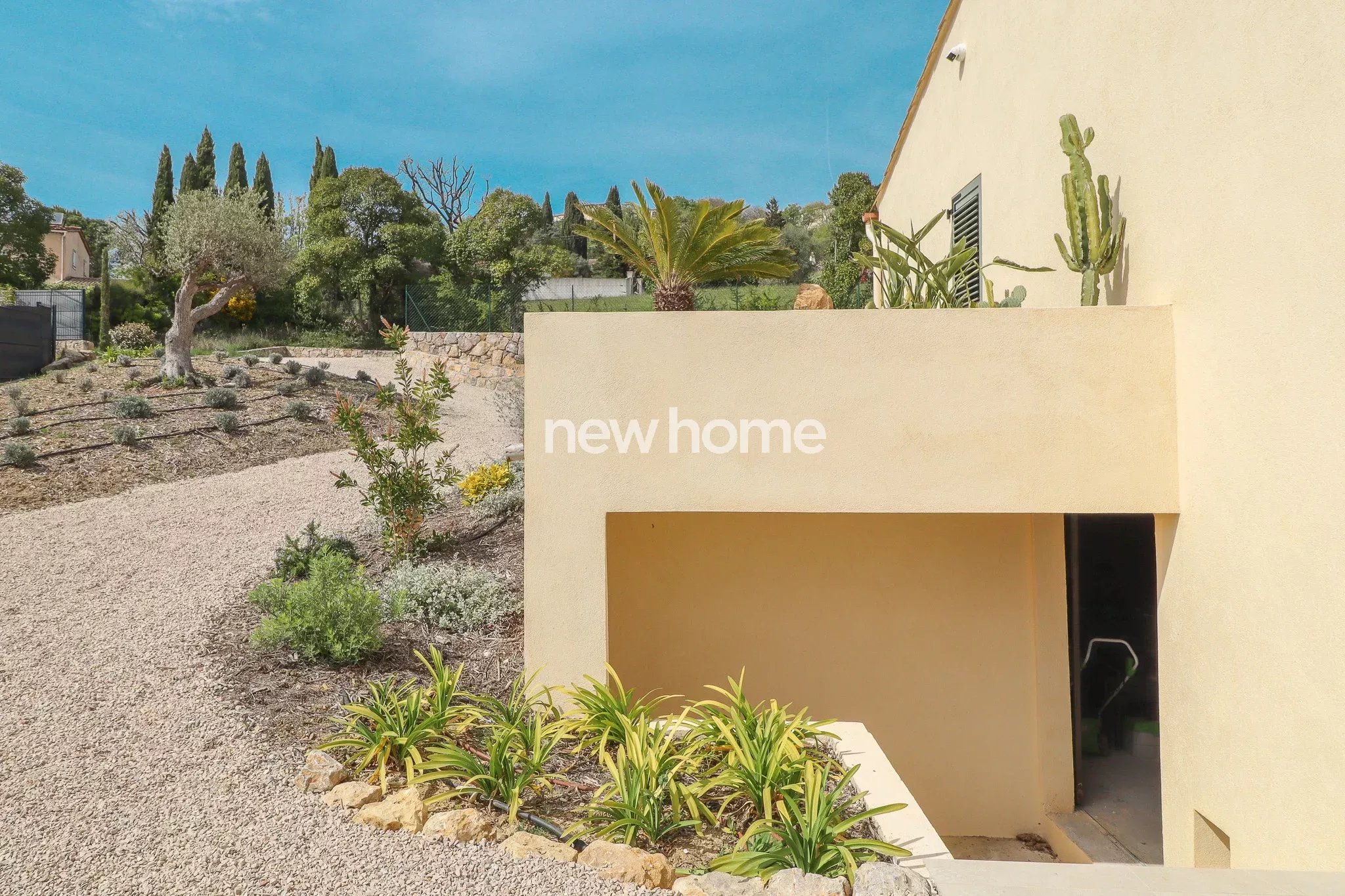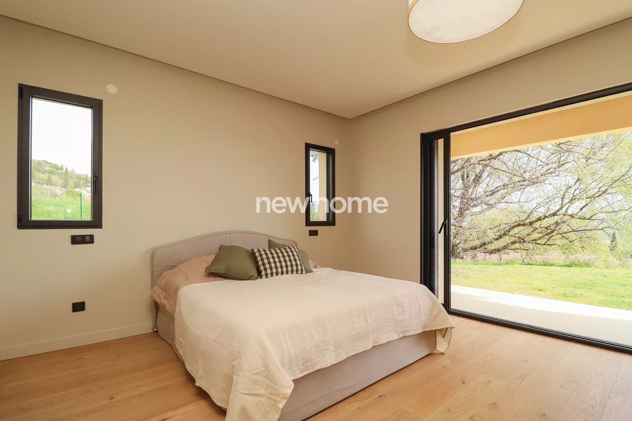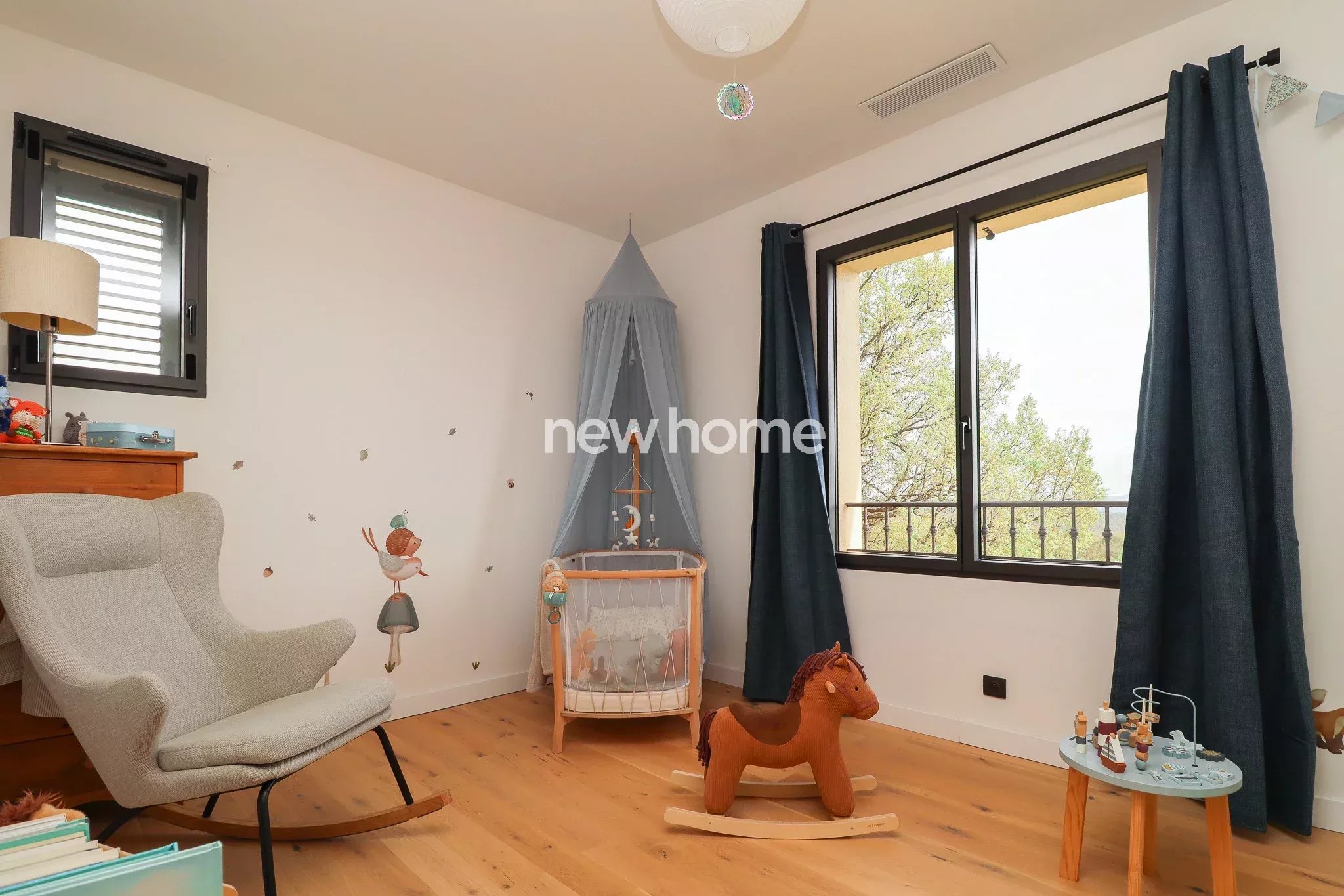 Een eerste slaapkamer op de begane grond beschikt over een dressing en een en-suite badkamer met douche en toilet. Een schuifpui geeft toegang tot een tweede overdekt terras, ideaal om in alle rust te genieten.