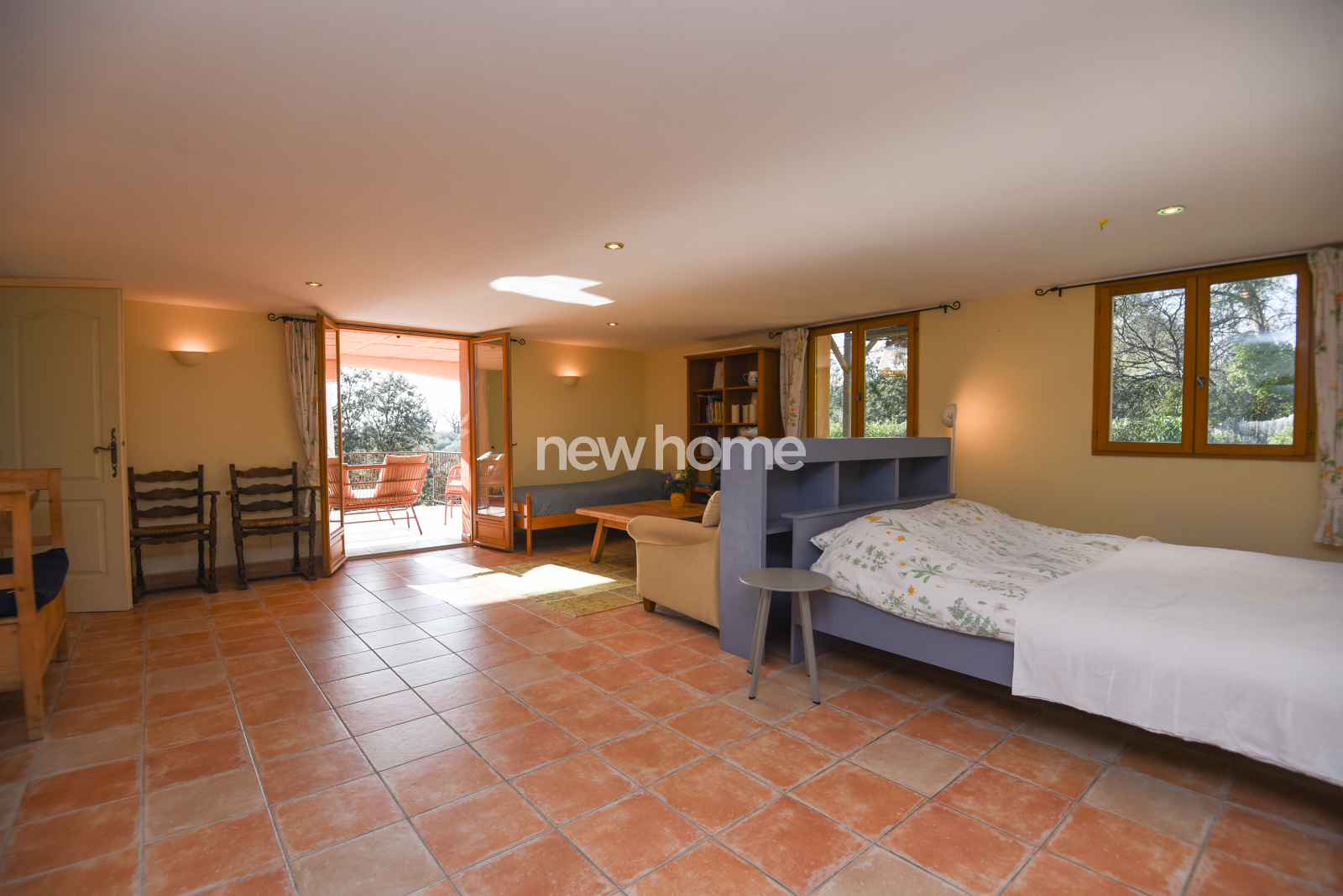 En rez-de-chaussée, un spacieux studio de plus de 35 m² avec salle d’eau constitue un espace idéal pour recevoir famille ou invités en toute indépendance. De larges ouvertures donnent accès au jardin et à une grande terrasse couverte exposée Sud-Ouest.