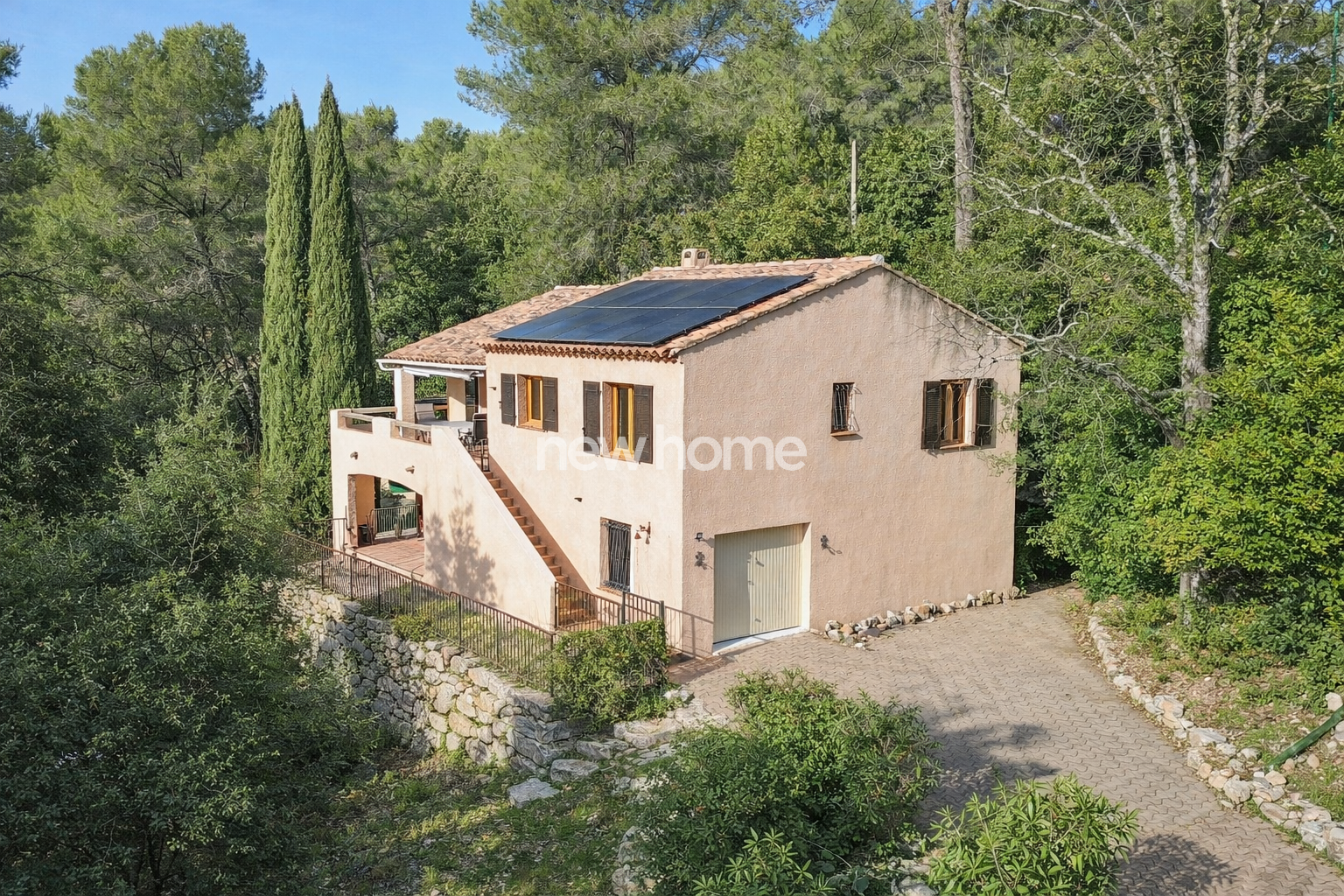La maison est entièrement équipée d’une climatisation gainable à l’étage et dispose de 10 panneaux solaires, contribuant à une consommation énergétique maîtrisée.