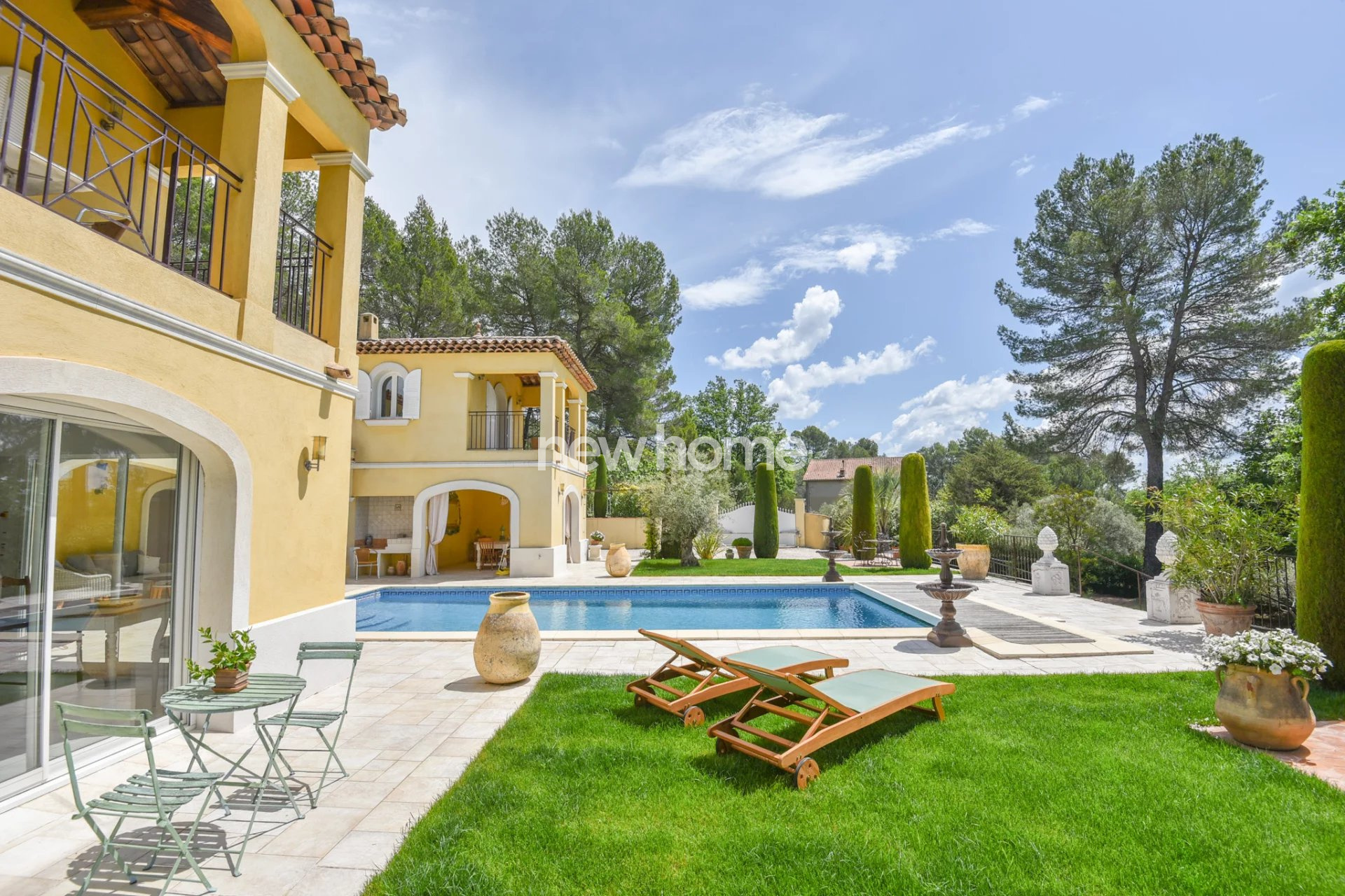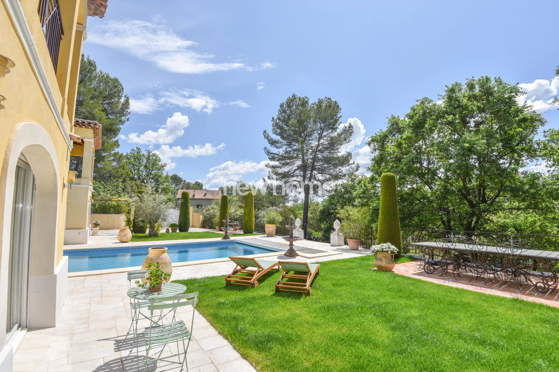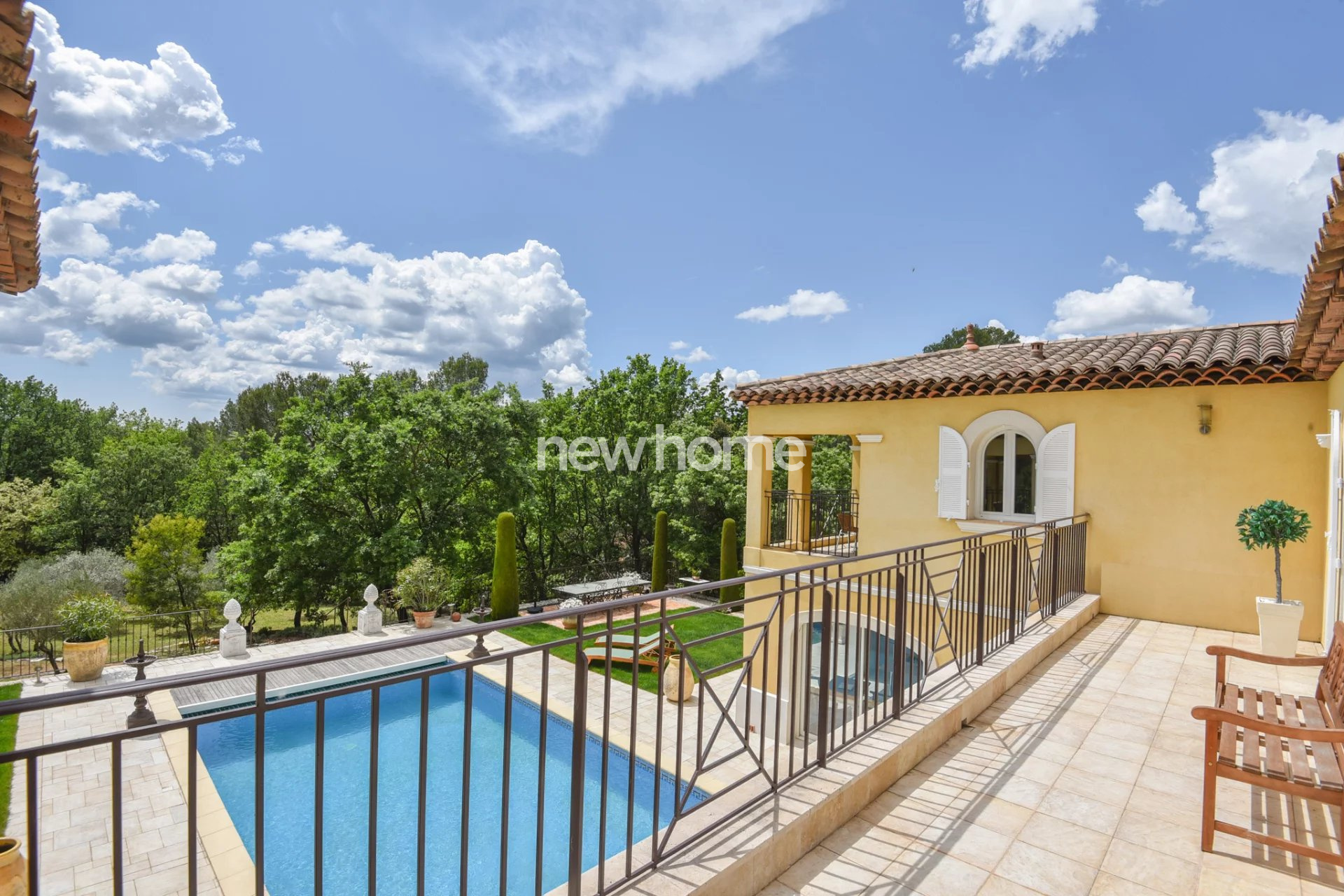 Lorgues (83510)EXCLUSIVITE - Superbe villa construite par un architecte français de renom avec des matériaux haut de gamme. Cette belle propriété bâtie en U se situe à quelques kilomètres seulement de Lorgues dans un quartier calme et sur un terrain entièrement clos de 4732m². Elle comporte pas moins de 3 portails d'entrée. Un patio entoure la piscine chauffée 10x5 et mène à un beau jardin magnifiquement paysagé ainsi qu'un ancien champ d'oliviers. De plus, vous profiterez d'une terrasse couverte et d'une terrasse ouverte sur le côté de la maison avec vue sur un ruisseau. Au rez-de-chaussée vous découvrirez : un hall d'entrée avec toilettes invités, un vaste salon avec plafond cathédrale, une cuisine entièrement équipée avec arrière-cuisine/cellier, avec tous accès vers l'extérieur ainsi qu'un garage double garage et un local technique. Au 1er étage se trouvent 4 chambres en suites disposant chacune de leur propre salle de bains, wc et terrasse. Les suites exposées Sud disposent de balcons privatifs avec vue sur les collines. Les 2 suites sur l'arrière de la villa disposent d'une terrasse privée dans le jardin et d'une entrée indépendante. Une propriété superbe et très originale offrant beaucoup de confort.