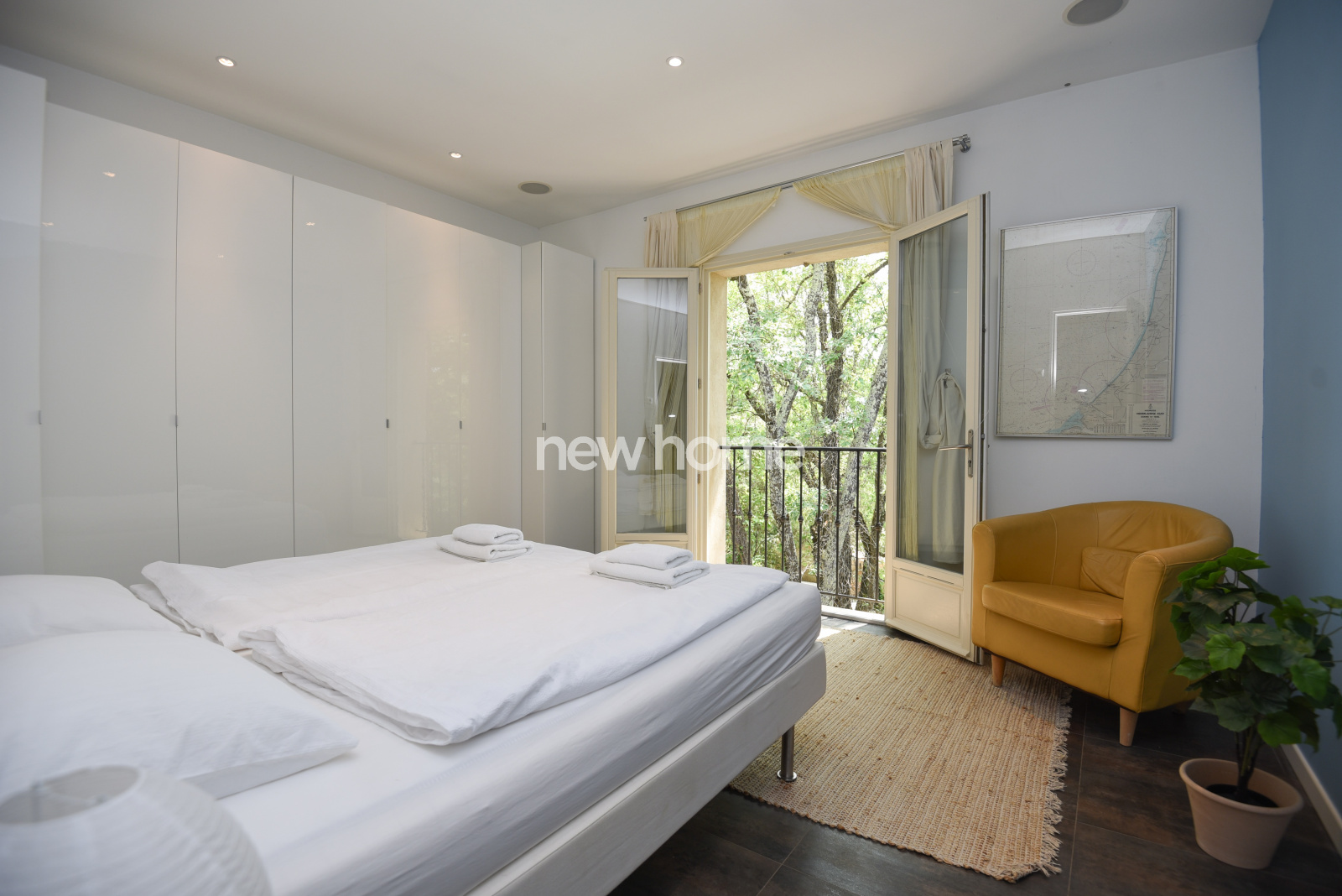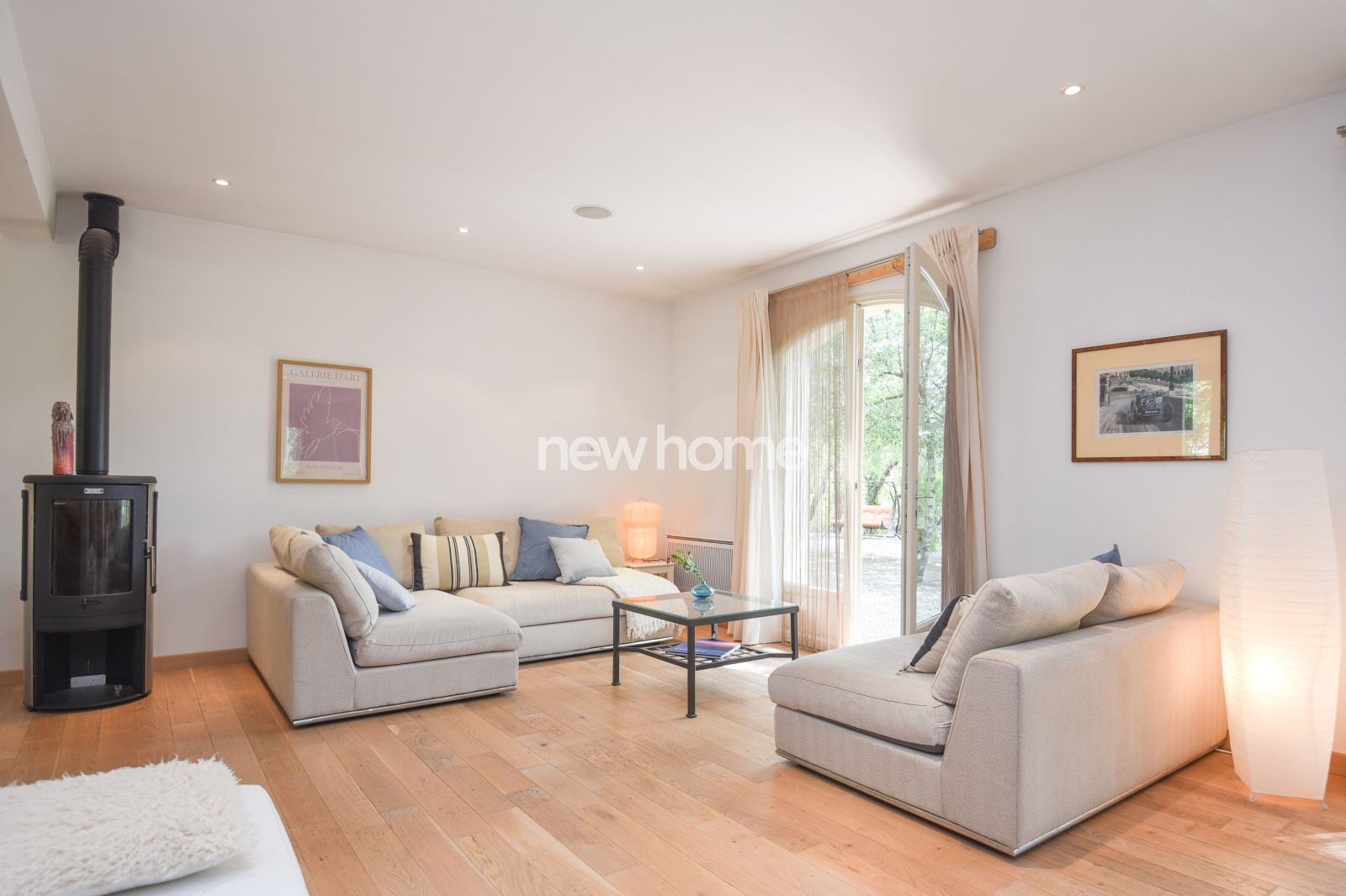 La villa dispose de pièces lumineuses et généreuses. Au rez-de-chaussée, un vaste séjour avec poêle à bois et portes-fenêtres ouvrant sur la terrasse, un bureau ouvert et une cuisine conviviale. Une grande chambre avec climatisation et salle d’eau attenante et buanderie complètent ce niveau.