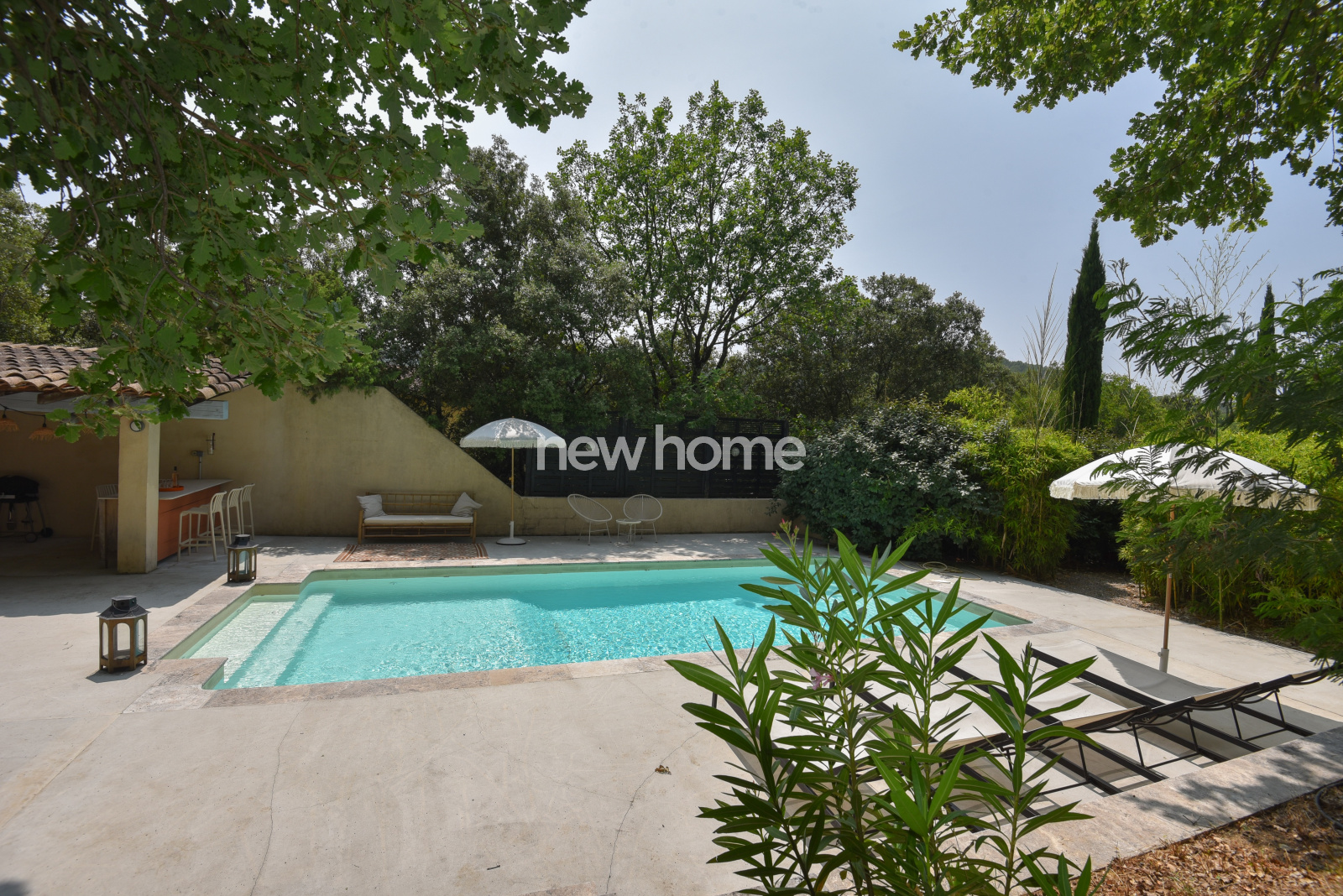 Le jardin arboré invite à la détente avec sa piscine privée, son terrain de pétanque et sa grande terrasse couverte, idéale pour les douces soirées d’été en famille ou entre amis.