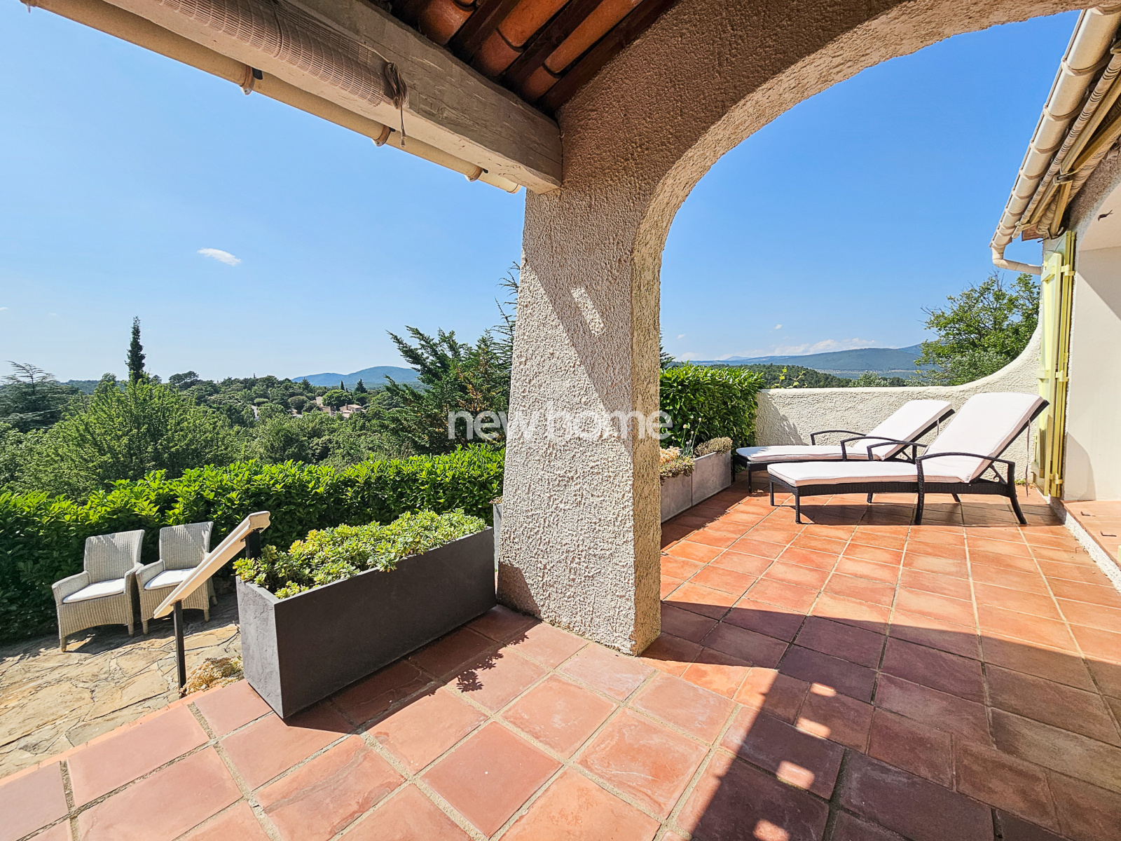 Tourtour (83690)Située dans le domaine privé et sécurisé de Saint-Pierre de Tourtour, cette villa provençale en parfait état offre un cadre de vie rare, alliant sérénité absolue et vue panoramique à 180°, sans aucun vis-à-vis. À proximité du village classé de Tourtour, surnommé « le village dans le ciel », elle déploie 118 m² habitables baignés de lumière grâce à son exposition sud-ouest. On y découvre une entrée accueillante, un séjour cathédrale de 35 m² avec cheminée à insert, une grande cuisine équipée avec cellier, trois chambres dont une suite parentale à l’étage avec une vue splendide, deux salles de bains et de nombreux rangements. Entièrement rénovée avec soin, la maison dispose de moustiquaires à chaque fenêtre et d’un confort optimisé. À l’extérieur, quatre terrasses orientées nord et sud permettent de profiter du soleil à toute heure, avec un espace repas couvert et barbecue. Le terrain, piscinable, accueille également un espace bien-être avec jacuzzi, sauna infrarouge et douche extérieure. Deux grandes caves offrent un bel espace de stockage, et le stationnement permet d’accueillir deux véhicules, avec possibilité de recréer un garage. Le domaine s’étend sur plus de 150 hectares et propose piscine de 25 m, courts de tennis, lacs, sentiers et terrains de pétanque. À proximité des Gorges du Verdon, du lac de Sainte-Croix, de Draguignan et de la mer, cette maison impeccable, vendue meublée si souhaité, n’attend plus que vous.