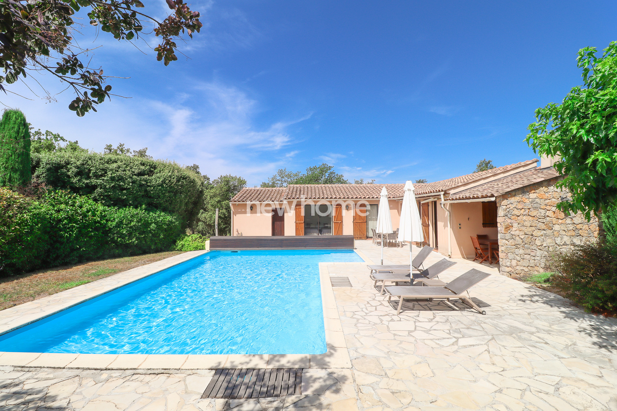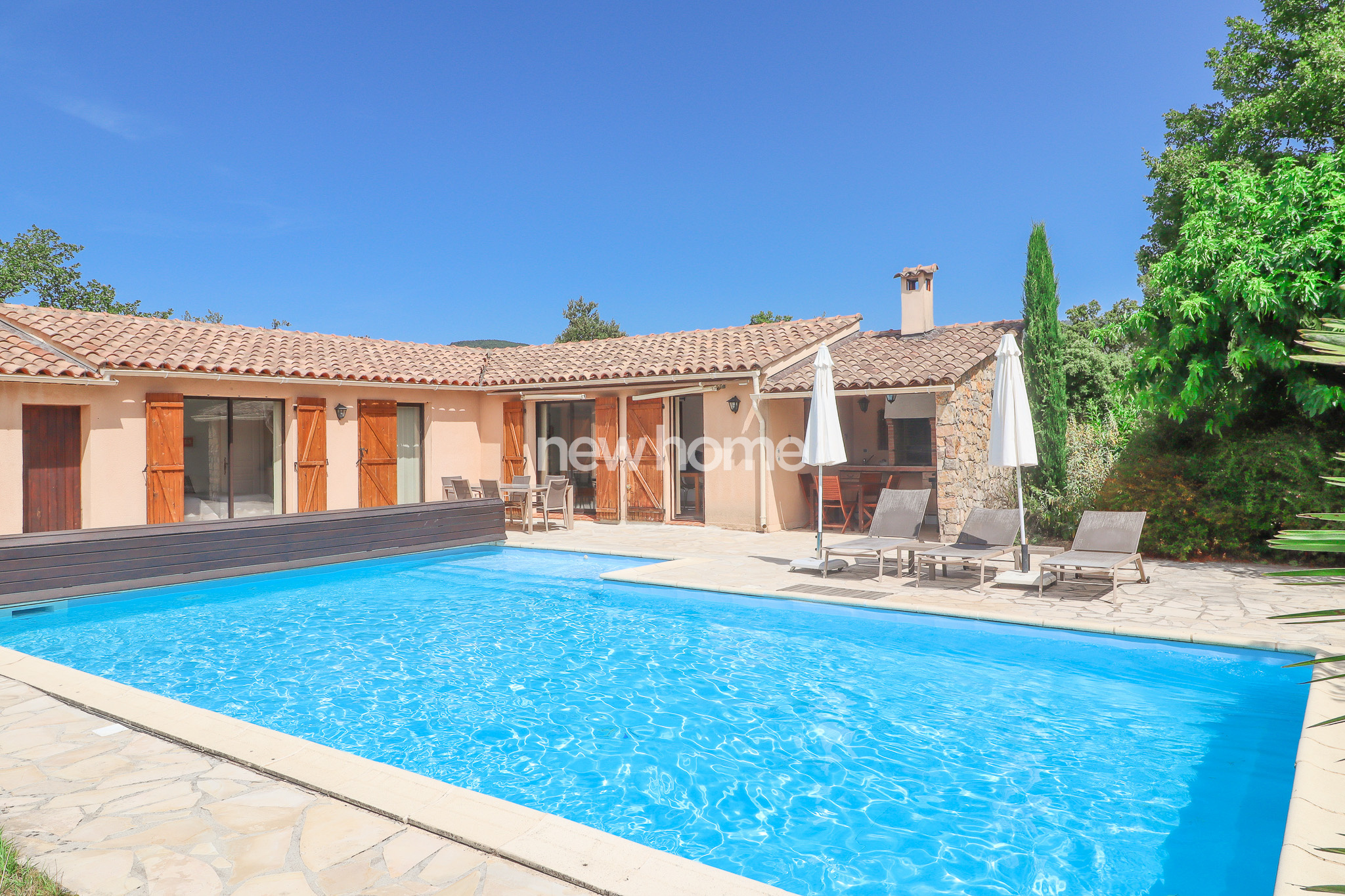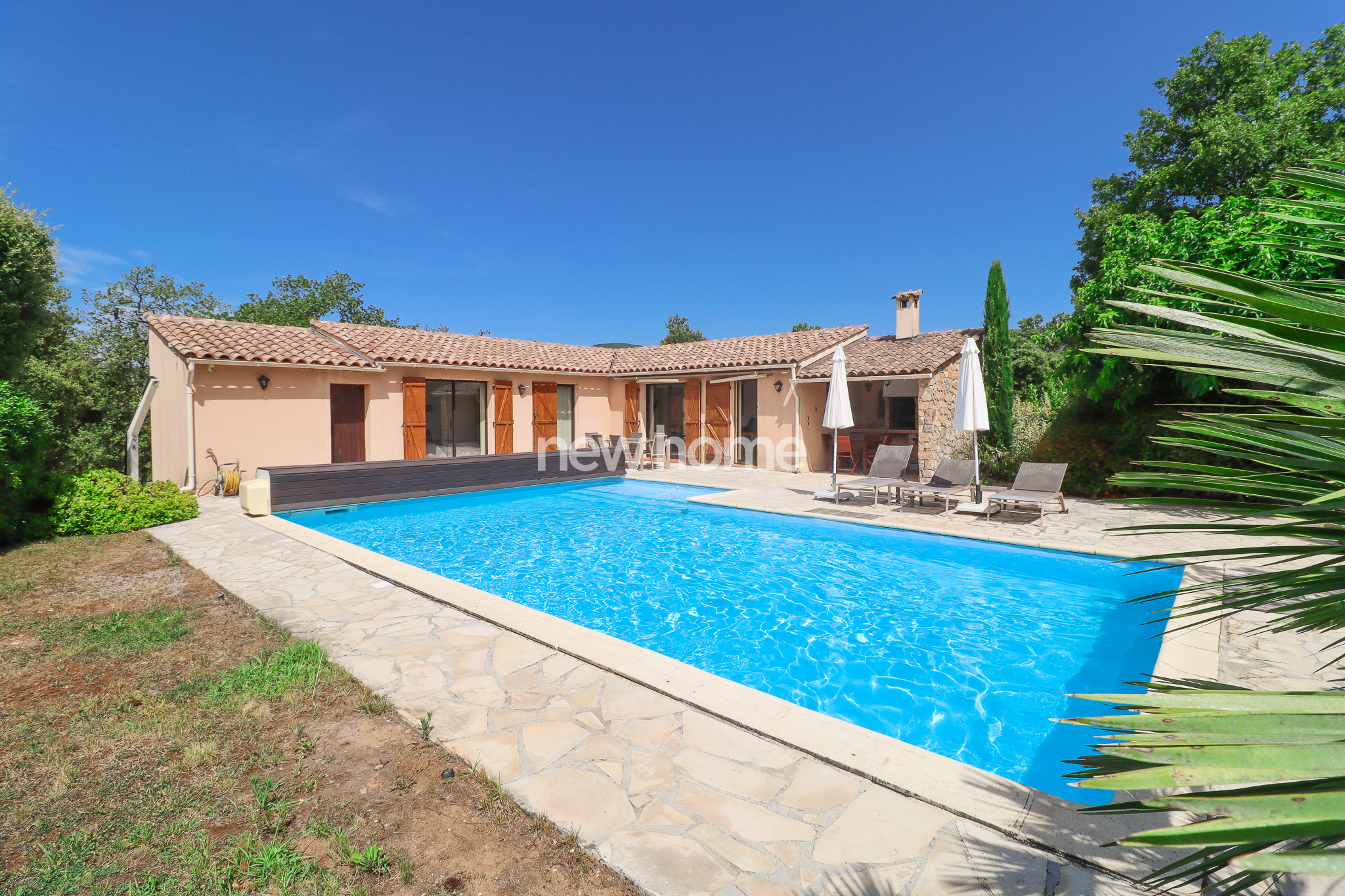 Seillans (83440)Ce petit paradis comprend une maison de plain-pied avec 2 chambres - surface habitable 52m² - et une grande piscine (liner 2025), cuisine d'été, carport et portail dans un joli jardin de 700m². Le tout se situe dans un domaine privé de 40 ha en plein nature. Petite maison d'habitation en bon état. Très charmant. Venez voir et laissez-vous séduire.