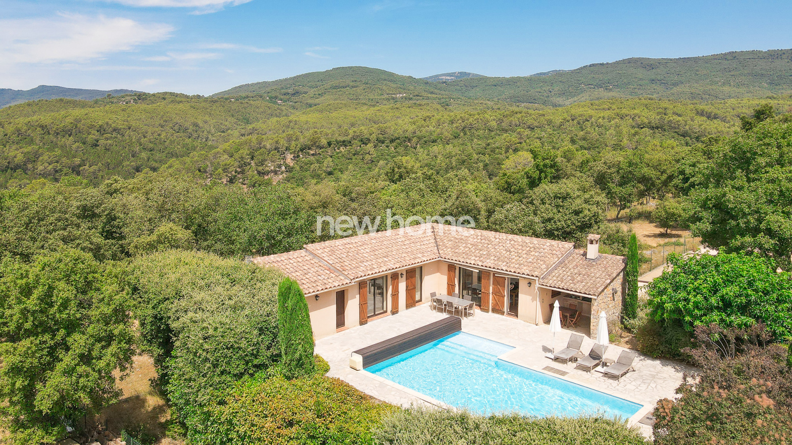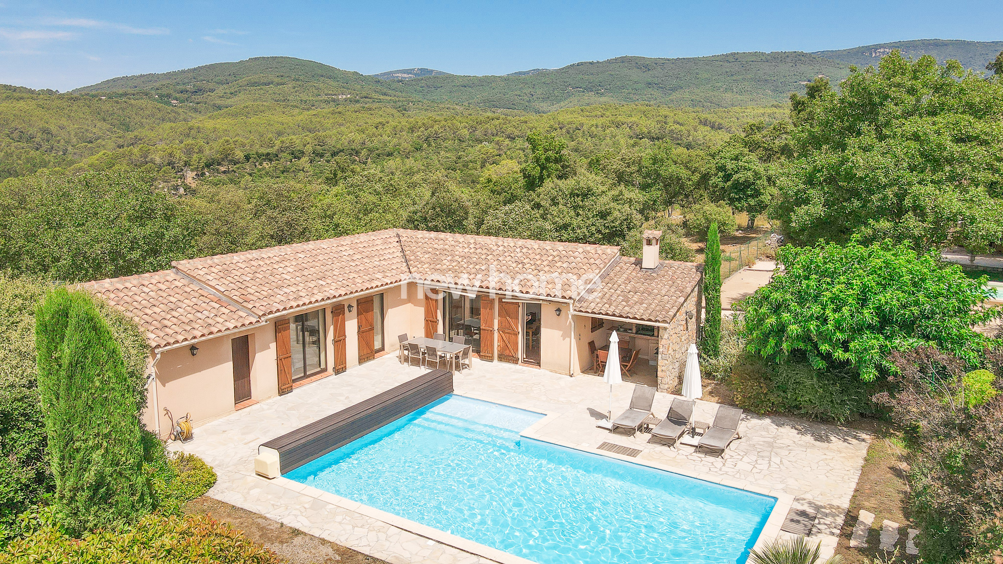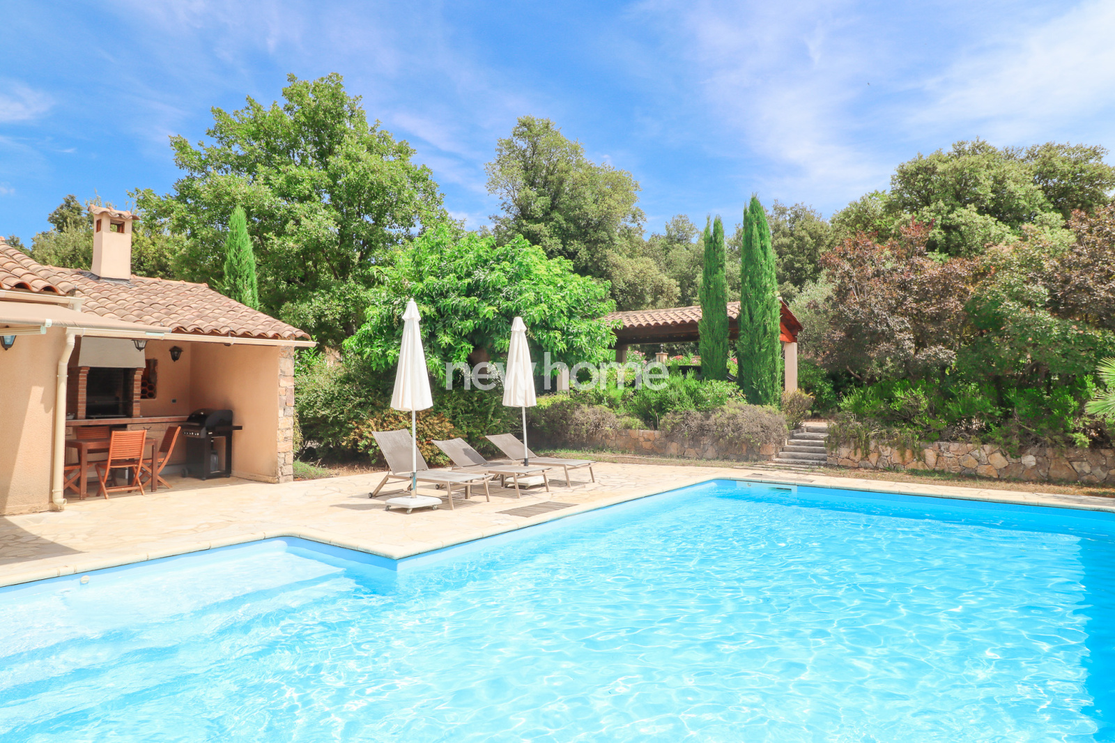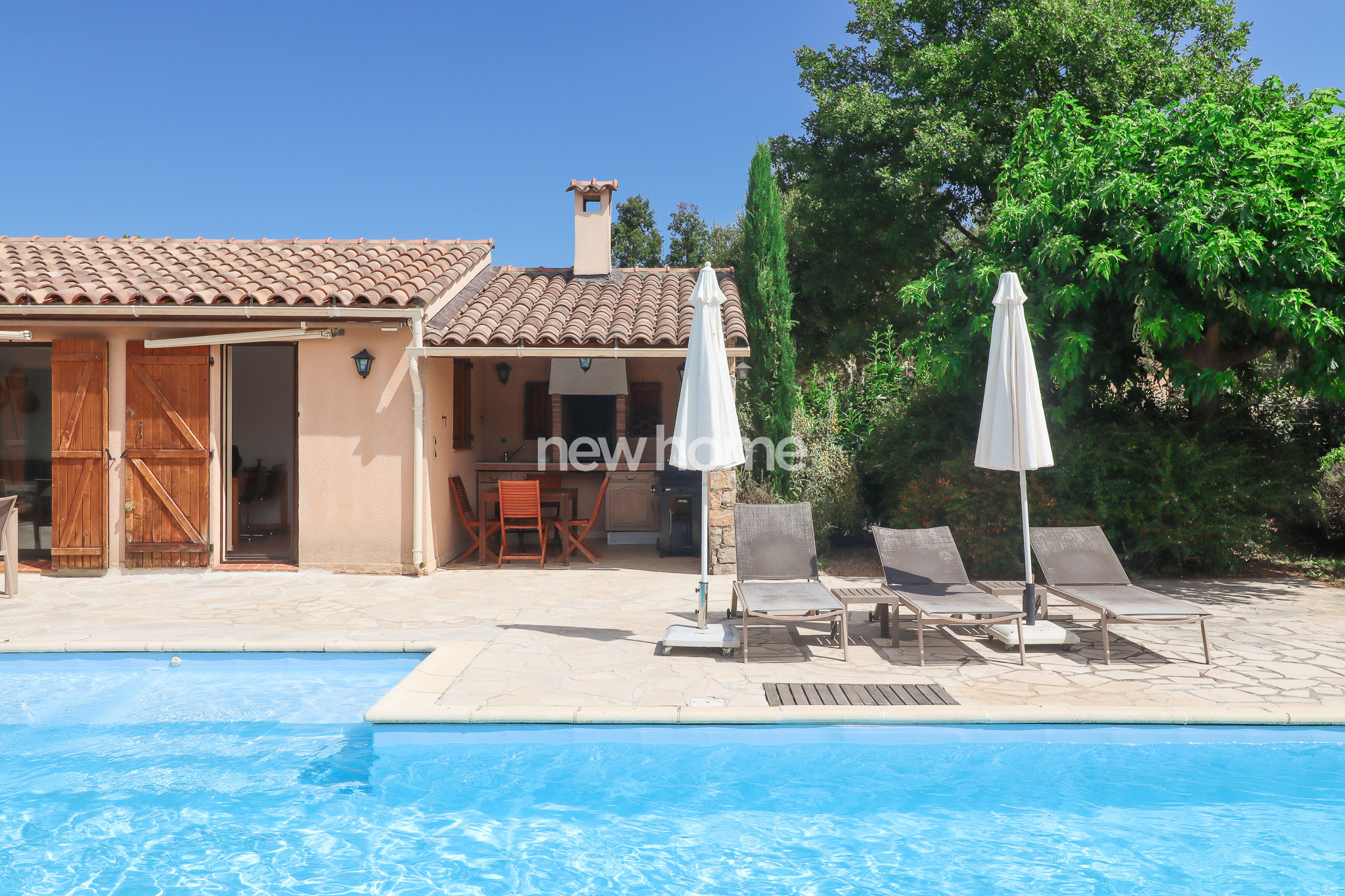 Seillans (83440)Ce petit paradis comprend une maison de plain-pied avec 2 chambres - surface habitable 52m² - et une grande piscine (liner 2025), cuisine d'été, carport et portail dans un joli jardin de 700m². Le tout se situe dans un domaine privé de 40 ha en plein nature. Petite maison d'habitation en bon état. Très charmant. Venez voir et laissez-vous séduire.
