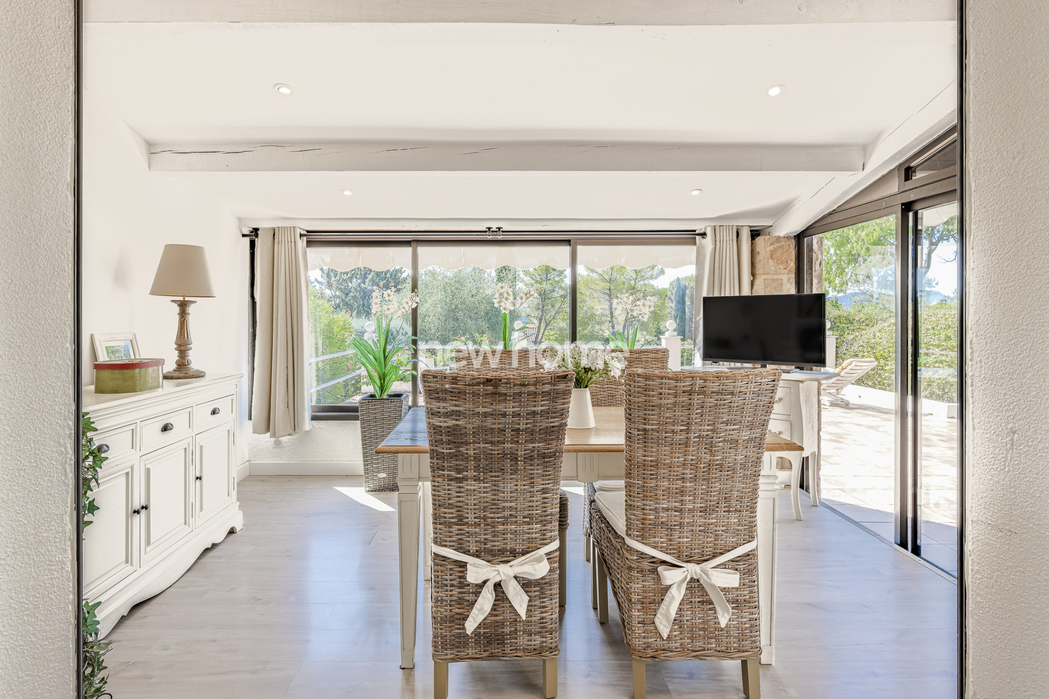 Seillans (83440)Située au cœur d’un domaine résidentiel privé et sécurisé, cette élégante maison style californienne de 136 m² séduit par son cadre paisible et verdoyant. Nichée dans un environnement naturel préservé, elle bénéficie d’un superbe terrain paysagé avec une grande piscine privative, un pool house et de vastes terrasses ensoleillées. L’habitation de plain pied, aujourd’hui divisée en deux appartements indépendants, est en parfait état et peut aisément retrouver sa configuration initiale en une seule et spacieuse maison familiale, simplement en supprimant une cloison. Ce bien polyvalent s’adresse aussi bien à des personnes souhaitant développer une activité de location saisonnière, qu’à des familles désireuses d’accueillir leurs proches tout en conservant une certaine indépendance, ou encore à une famille souhaitant profiter pleinement d’une belle maison individuelle réunifiée. Cadre de vie privilégié, idéal pour profiter du climat méditerranéen, tout en bénéficiant du confort et de la sécurité d’un domaine recherché.