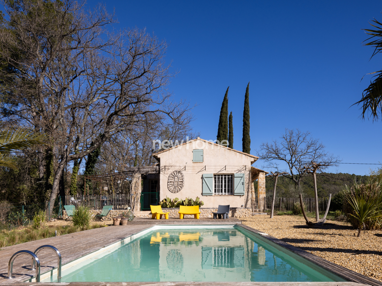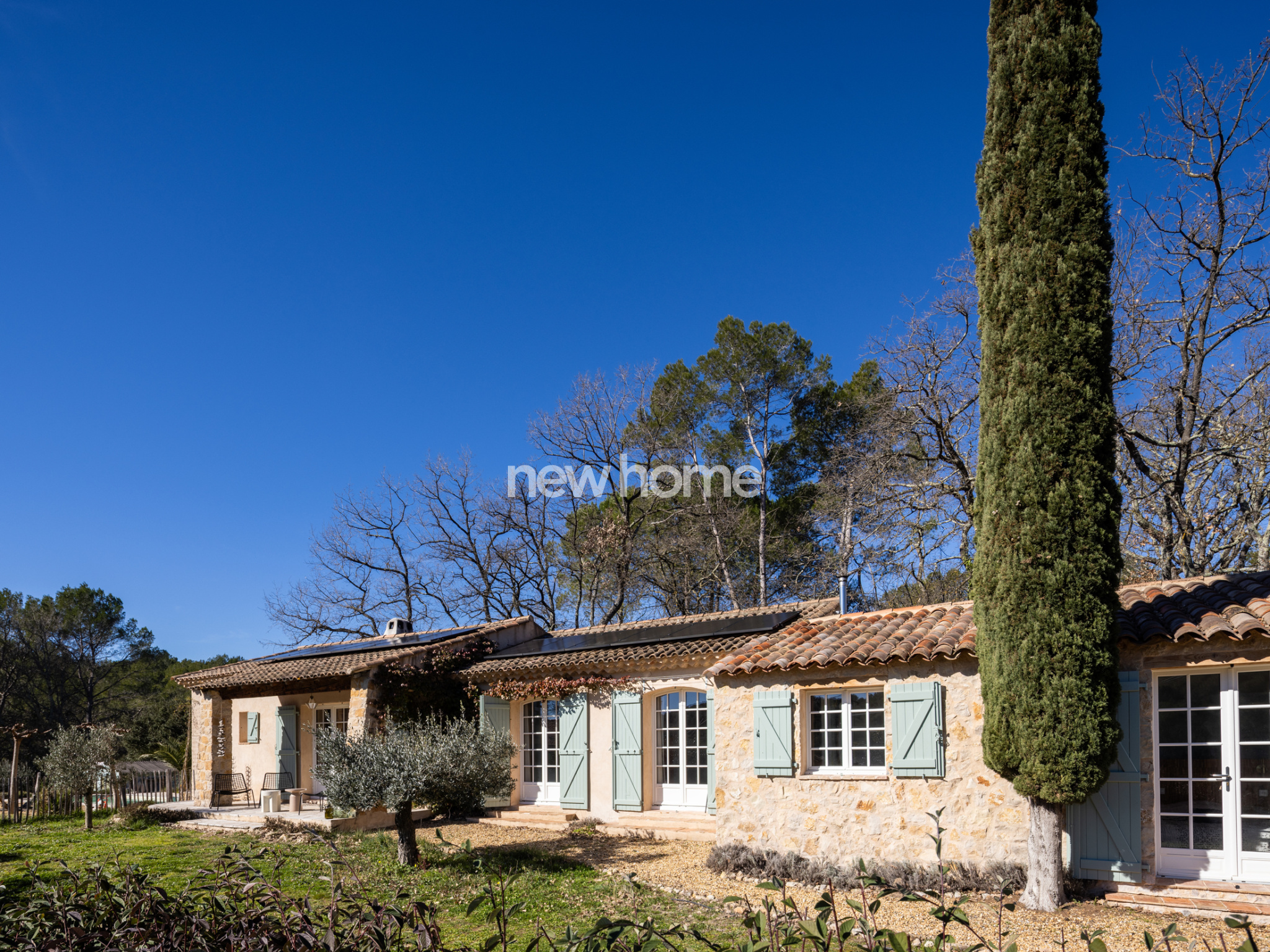 Flayosc (83780)Cette belle villa de plain-pied, entièrement rénovée, d’environ 110 m², dispose d’une piscine (10 x 3,5 m) et se situe dans un environnement verdoyant entre Lorgues et Flayosc. Ces deux villages pleins de charme sont facilement accessibles à vélo par l’ancienne voie ferrée. La maison et le jardin ont été aménagés avec le plus grand soin, en utilisant des matériaux nobles. Cette propriété clé en main, de plain-pied, offre un vaste séjour/salle à manger avec un poêle à bois et parquet en chêne, une cuisine ouverte, ainsi que des portes-fenêtres donnant sur une terrasse partiellement couverte. L’espace nuit comprend deux chambres partageant une salle de bains, un WC indépendant, ainsi qu’une troisième chambre avec salle de bains et WC en suite. Pour le télétravail, une pièce bureau idéale est aménagée, équipée d’un poêle à granulés et de la fibre optique. Un cellier de 12 m² attenant à la maison et un abri de jardin complètent les espaces de rangement.