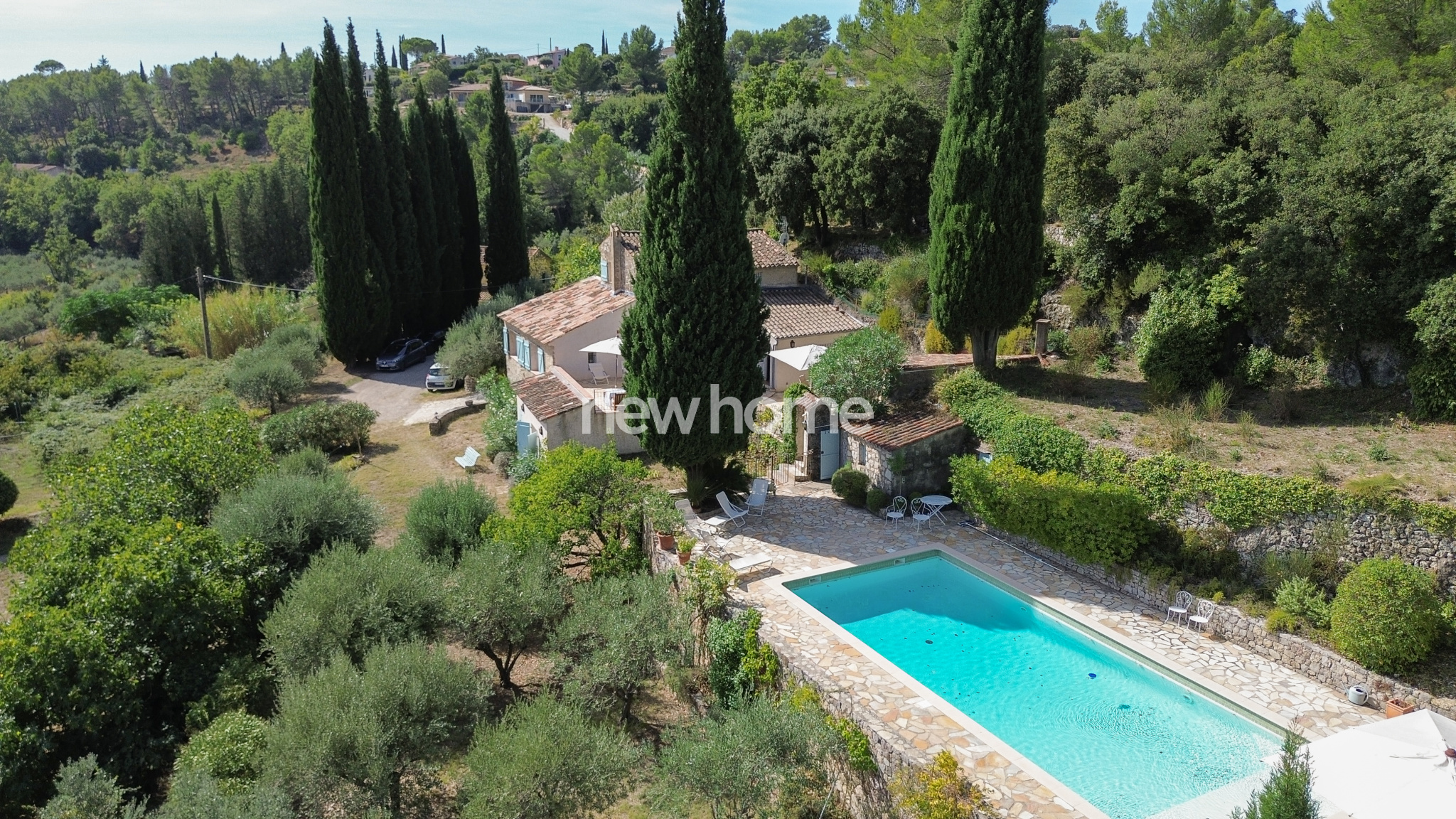 Le terrain de plus de 7 000 m² est tout simplement exceptionnel : vue panoramique, terrasses romantiques, végétation luxuriante, oliviers et figuiers. Ici, tout respire le charme et l’authenticité, dans une atmosphère de quiétude absolue sans être isolée – le village se rejoint à pied en seulement 15 minutes.
