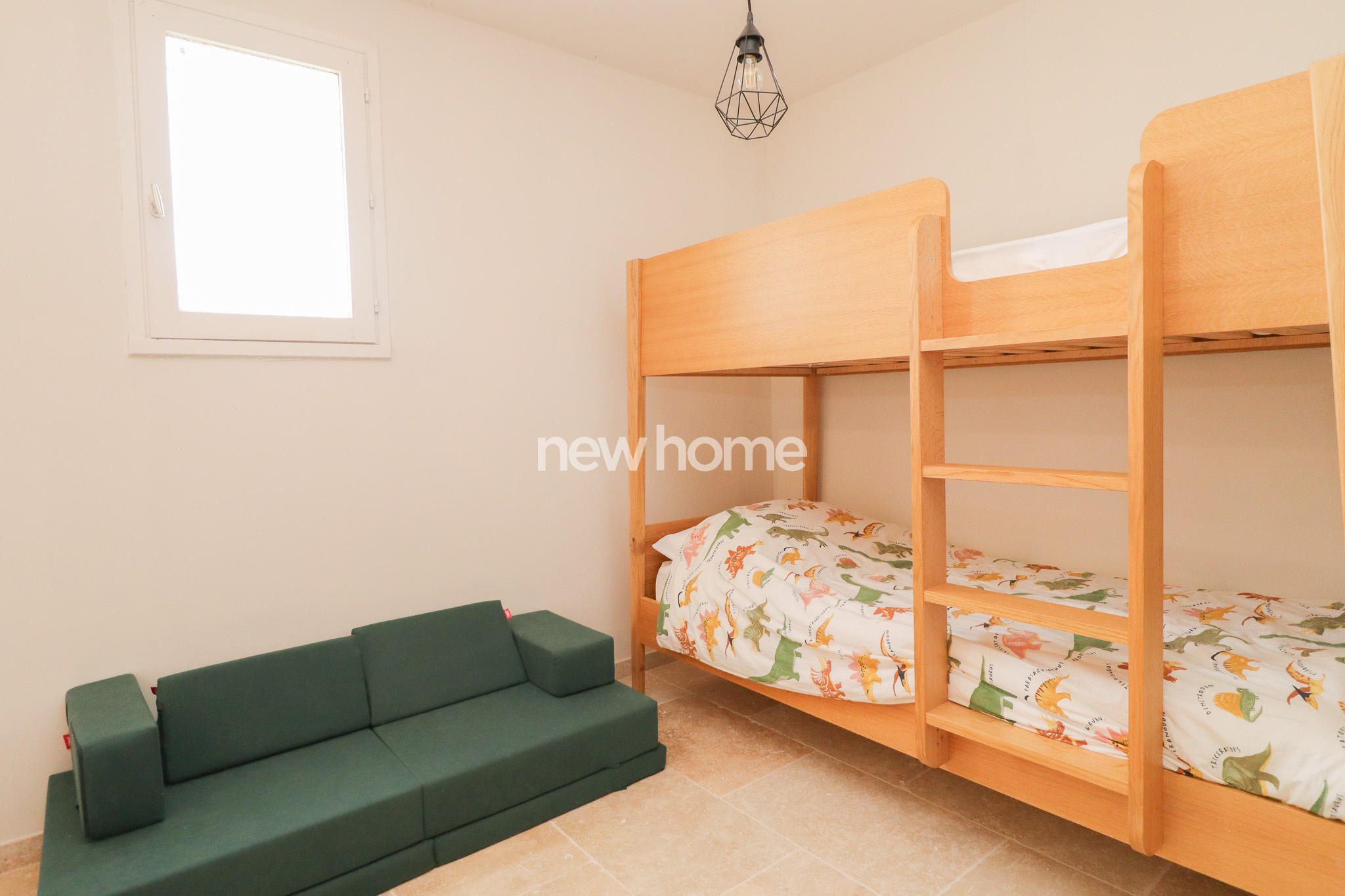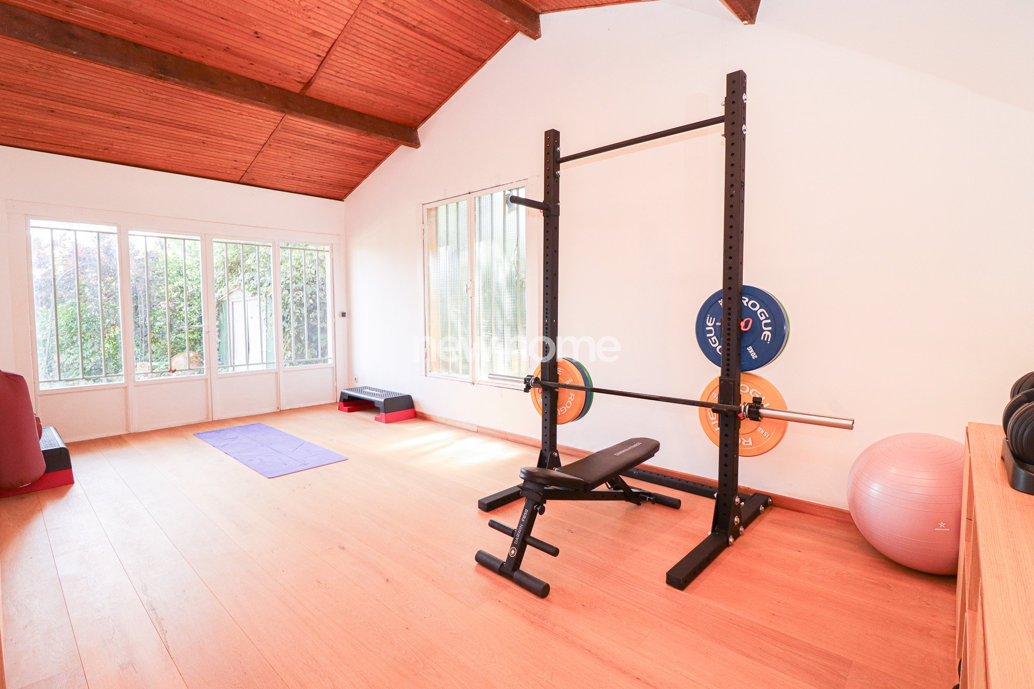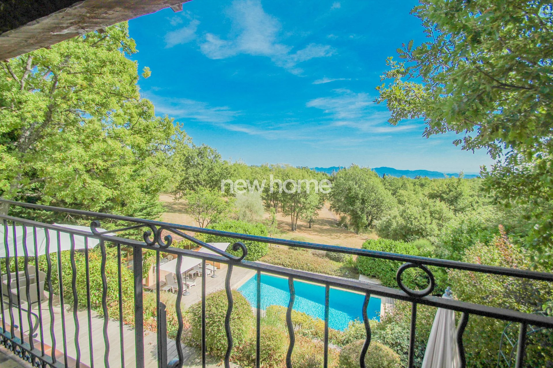 La propriété offre un salon lumineux et spacieux, une grande salle de jeux/salon TV, une salle de sport, ainsi que cinq chambres. Trois chambres se trouvent au niveau principal, avec le salon et la cuisine, et deux chambres supplémentaires se trouvent à l’étage inférieur, donnant sur la terrasse, parfait pour accueillir famille, amis ou pour un usage polyvalent. Le salon s’ouvre sur un grand balcon convivial, idéal pour dîner en plein air tout en profitant d’une vue panoramique imprenable sur la campagne provençale.
