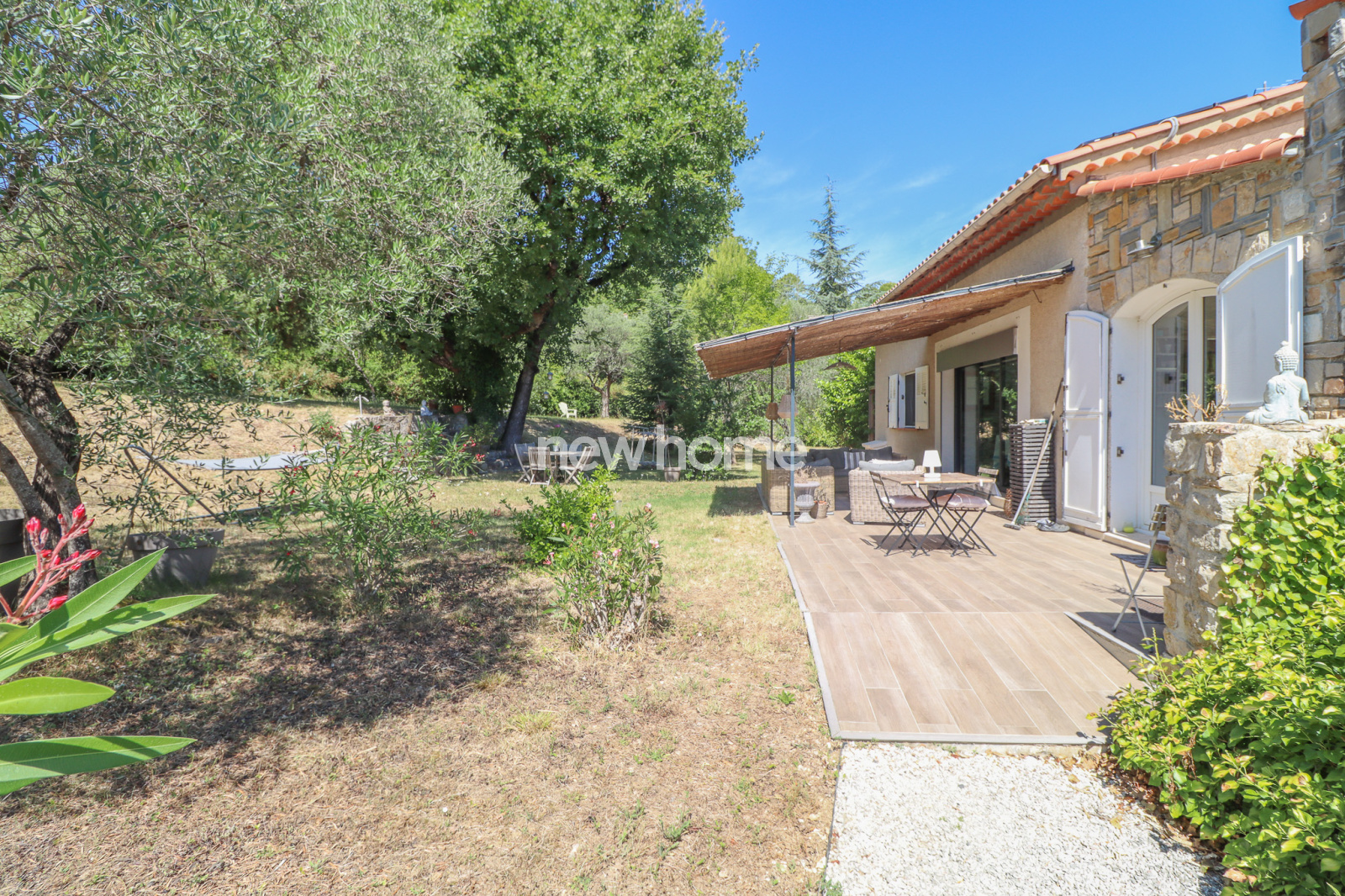 Tourrettes (83440)Cette maison lumineuse avec bel appartement indépendant de env. 45m² sh se trouve au calme dans la nature, pas isolée et une belle vue. La maison principale comprend un beau séjour lumineux, la baie vitré donne accès à la terrasse et le jardin avec piscine. 2 Chambres, 2 salles de bain, 2 WC, belle cuisine aménagée et équipée, cellier, mezzanine, pièce mansandée avec rangement Grand garage et atelier. En plus du chauffage centrale il y a un poêle à bois et de la climatisation réversible. Piscine coq 8x4m. Le tout sur un beau terrain en larges restanques de 3600m². Très belle vue. Pas isolé à seulement quelques minutes du centre ville de Fayence. 50 minutes de Nice Aéroport et plusieurs terrains de Golf renommés dont Terre Blanche et Golf Saint Andreol.