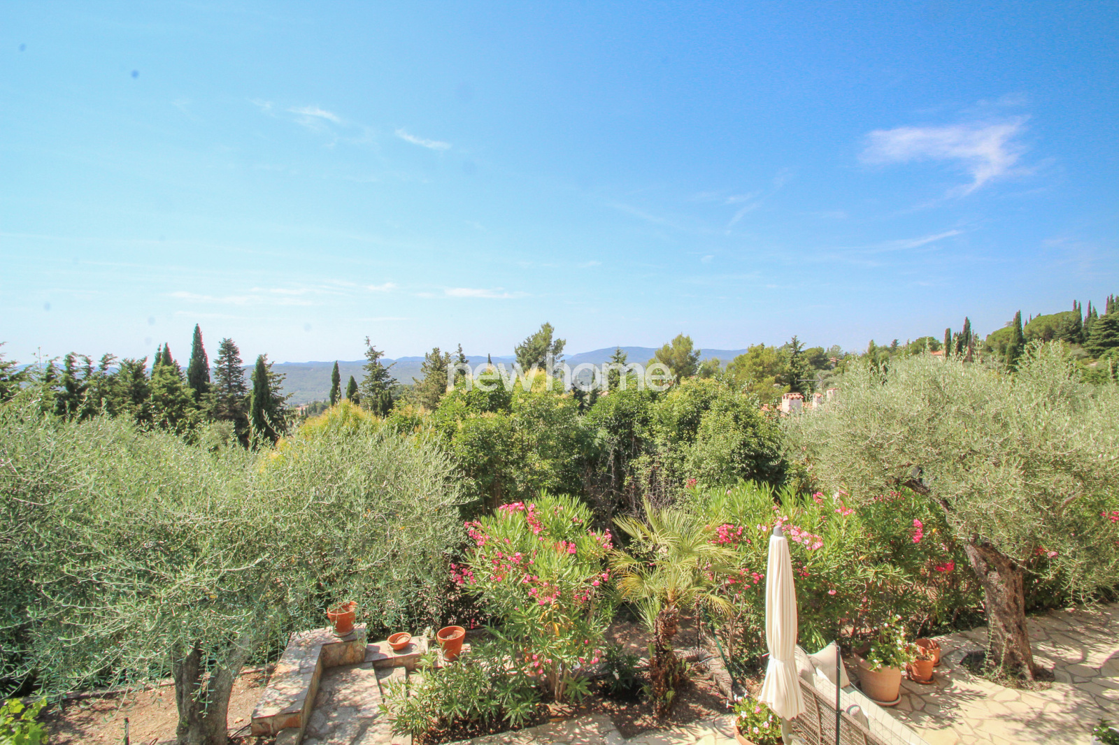 Tourrettes (83440)Villa en parfait état : entrée par la petite verrière, salon et salle à manger agréablement lumineuse et vous profitez de la belle vue. La salle à manger est semi ouverte sur le séjour et la cuisine. Depuis la cuisine vous accédez directement sur la belle terrasse spacieuse avec également la vue splendide. De plain-pied vous trouvez une chambre et une salle d’eau avec WC. Rez de jardin : Grand dégagement avec portes fenêtres pouvant utiliser comme bureau ou atelier dans lequel donnent 2 chambres et une salle d’eau avec WC. Portail automatique et piscine. Tout à l’égout. Chauffage centrale pompe à chaleur air/eau et toutes les chambre airconditionées. Un bien plein de charme en parfait état, vue panoramique, à pied du village sur un terrain de 760m². Facile à vivre.