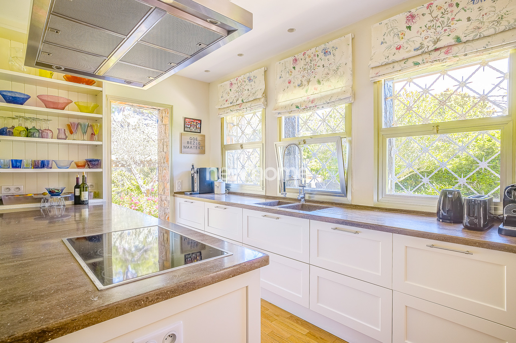 La villa se compose d’une entrée élégante, d’un vaste séjour avec cheminée et d’une salle à manger ouvrant sur une grande terrasse couverte face à un magnifique jardin paysager. La cuisine, entièrement équipée, complète cet espace de vie lumineux et convivial.