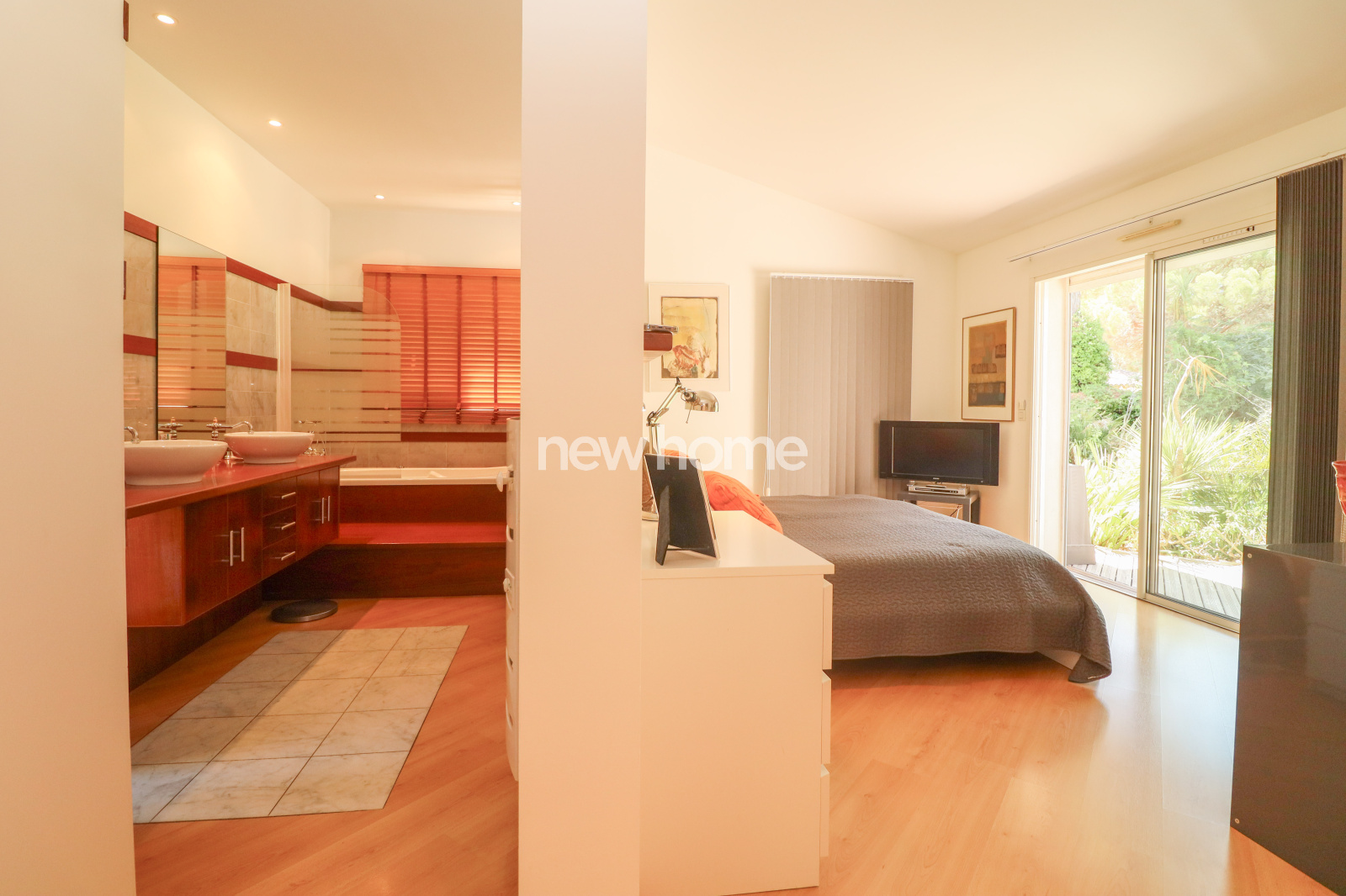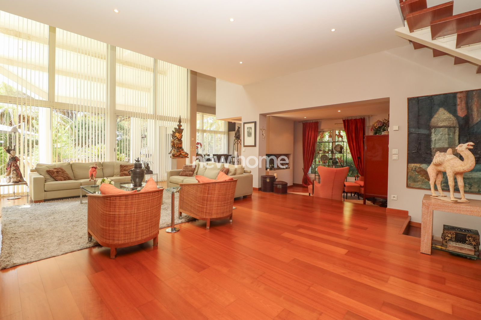 En rez-de-jardin : une vaste pièce de rangement avec placards, une buanderie, une cave (idéale pour le vin), un sauna avec douche, le local technique de la piscine, ainsi qu’un grand garage complètent ce bien.