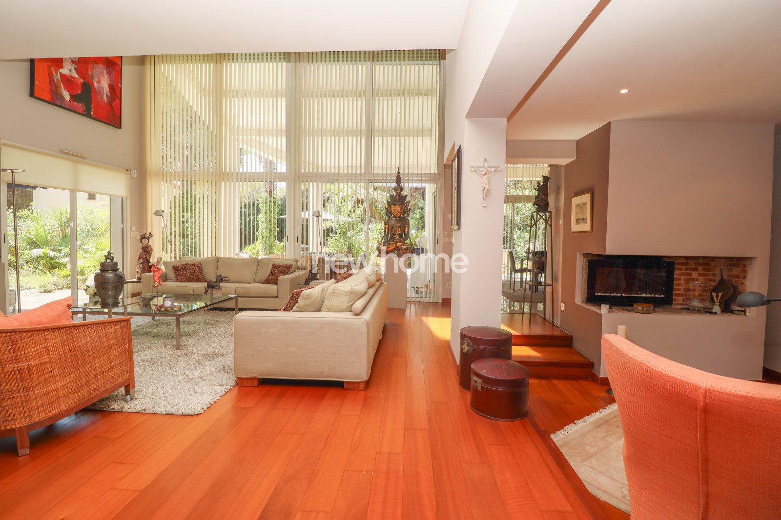 Dès l’entrée, vous serez séduit par un salon de 60 m² baigné de lumière, prolongé de quelques marches plus bas par un espace cheminée chaleureux, idéal pour la lecture ou la détente. La cuisine ouverte, réalisée avec des matériaux haut de gamme, est entièrement équipée et profite elle aussi d’une belle hauteur sous plafond et d’une superbe luminosité grâce aux nombreuses ouvertures.