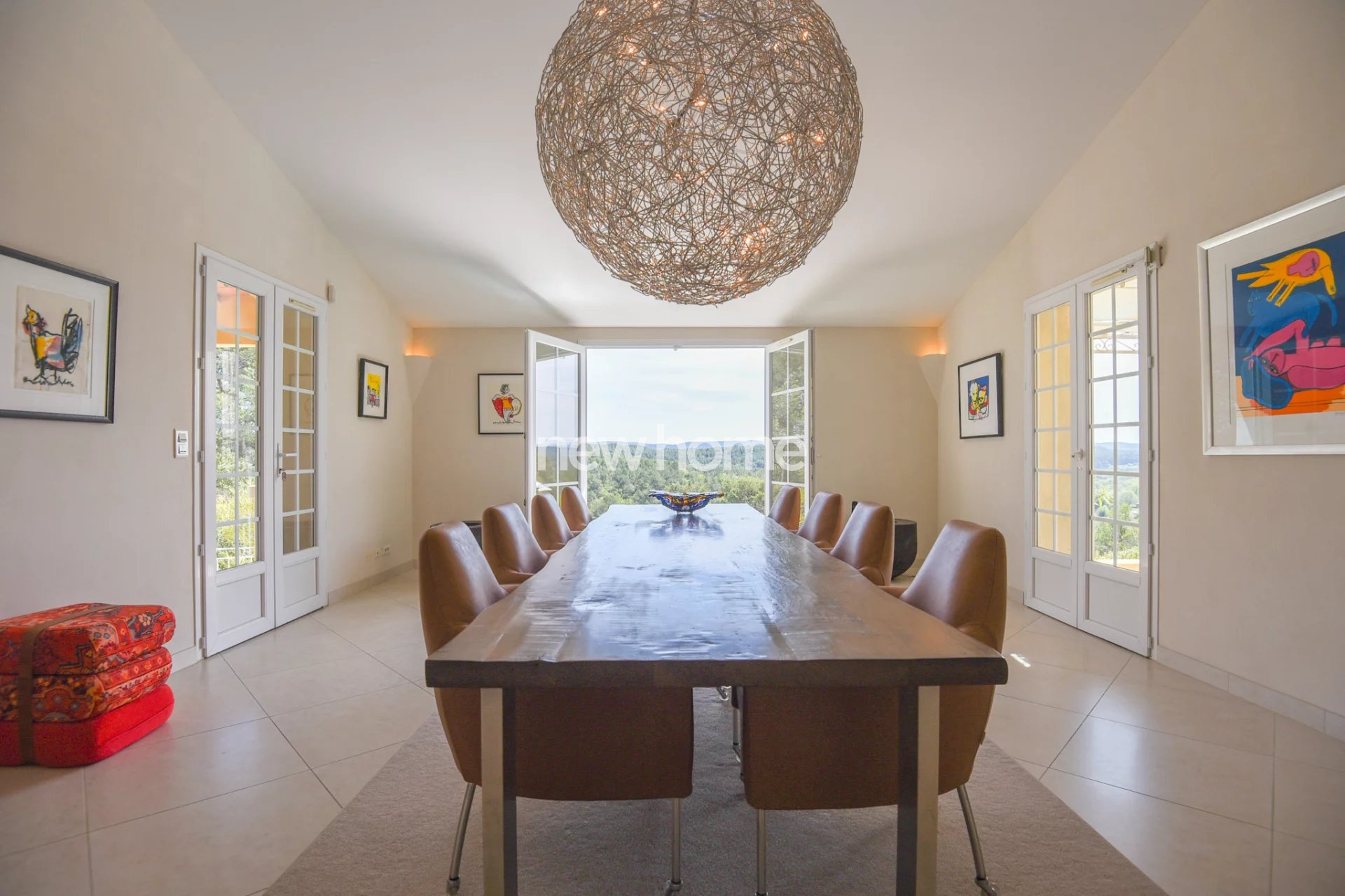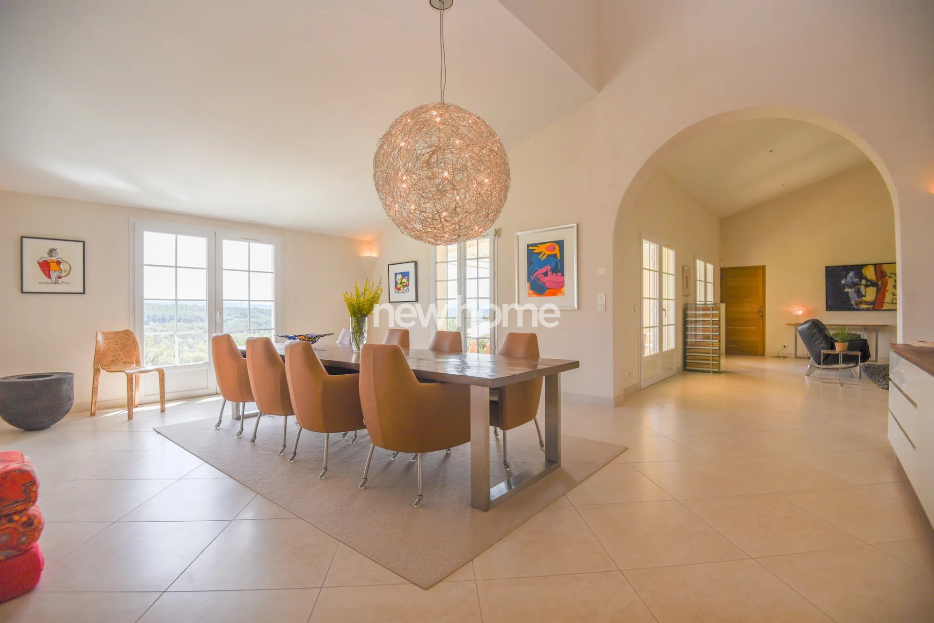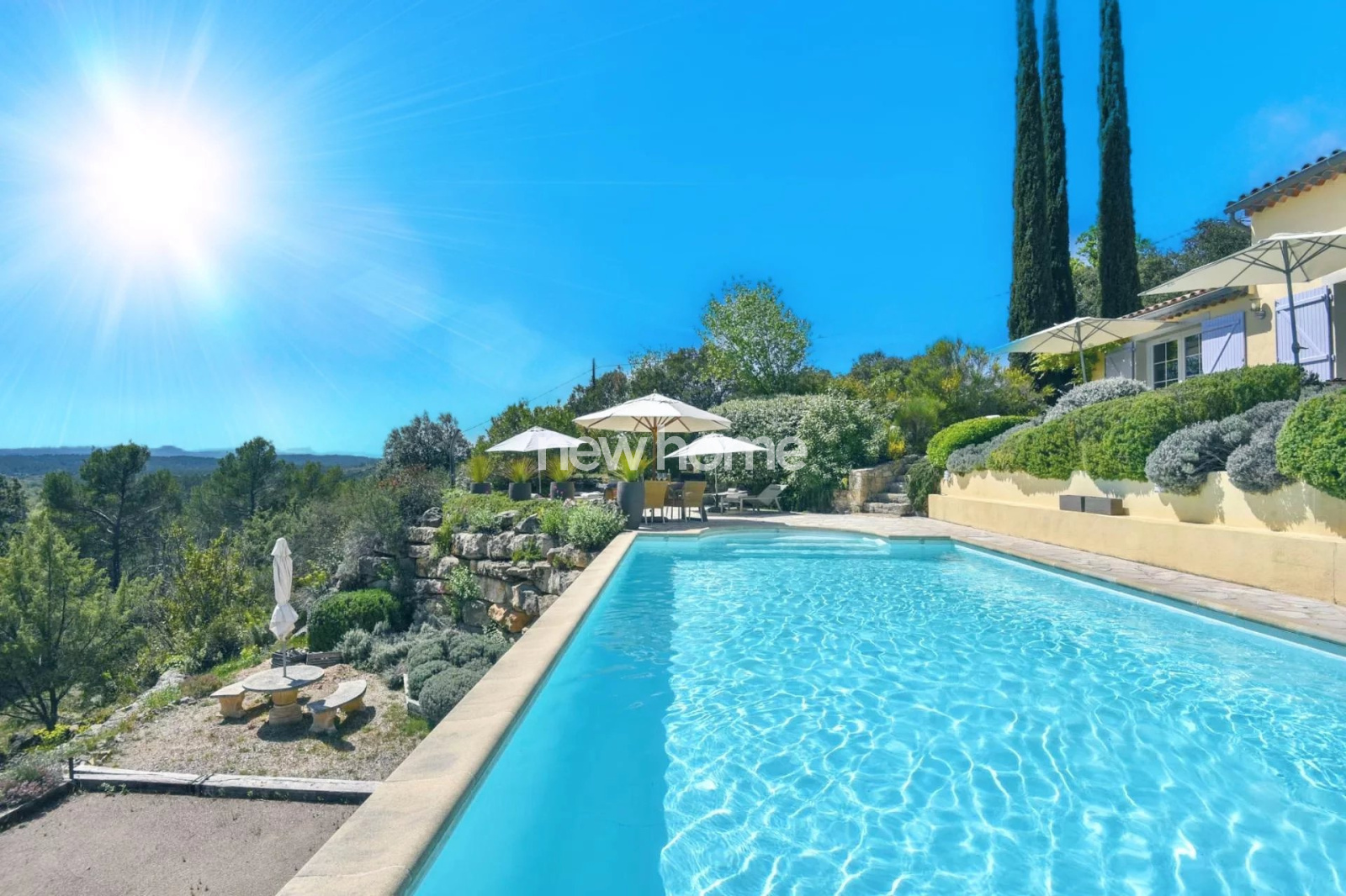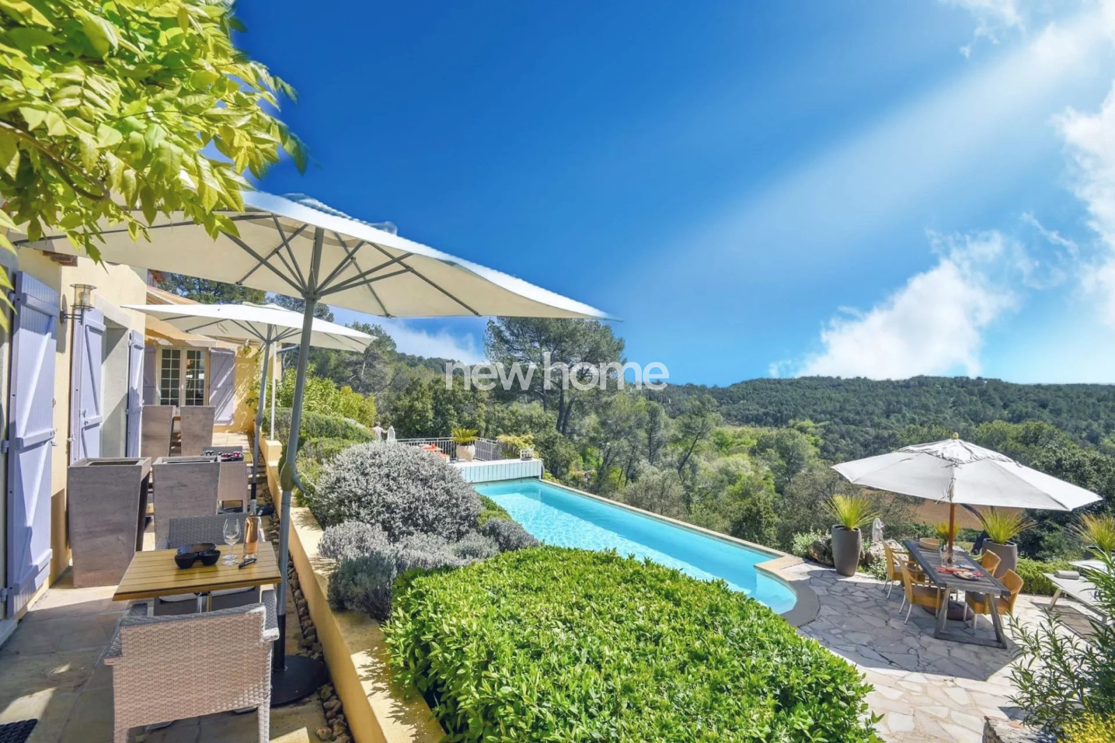 Entrecasteaux (83570)Très belle villa néo-provençale construite en 2003 et 2007 avec une architecture de style contemporaine. La villa demeure en excellent état et offre une vue panoramique sur les vignes et les collines environnantes. Elle se situe à pied du centre du village médiéval d'Entrecasteaux dans un quartier calme et sur un terrain en pente de 6250m². Elle dispose de 6 chambres (dont 5 avec climatisation), de 5 salles de bains, d'un spacieux salon très lumineux avec haut plafond et poêle à bois, d'une belle salle à manger (les 2 avec accès vers les terrasses couvertes), d'une cuisine haut de gamme moderne (double) entièrement équipée ainsi qu'une cave à vins bien agencée, d'une buanderie ainsi que d'un espace de stockage. Dans le beau jardin paysagé vous profiterez de la belle piscine chauffée (11x5) entourée par différentes terrasses offrant une vue superbe ainsi que du terrain de boules. Le propriété dispose de 2 portails d'entrée, d'un grand espace parking et d'un garage. Une maison idéale pour les vacances pafaitement adaptée pour une grande famille ! Beau potentiel pour la location également !